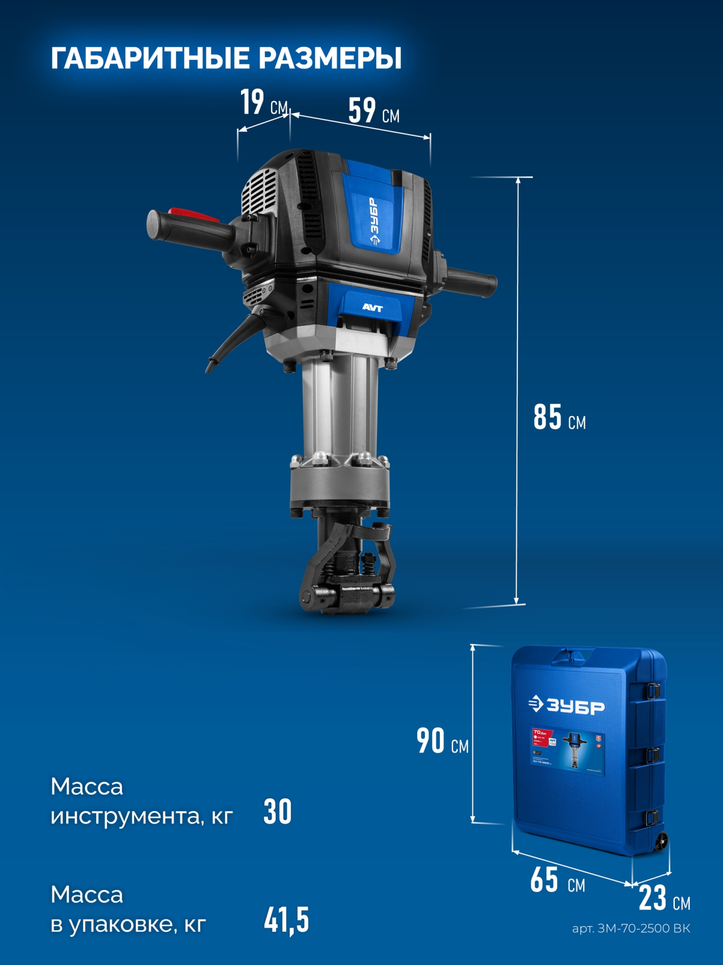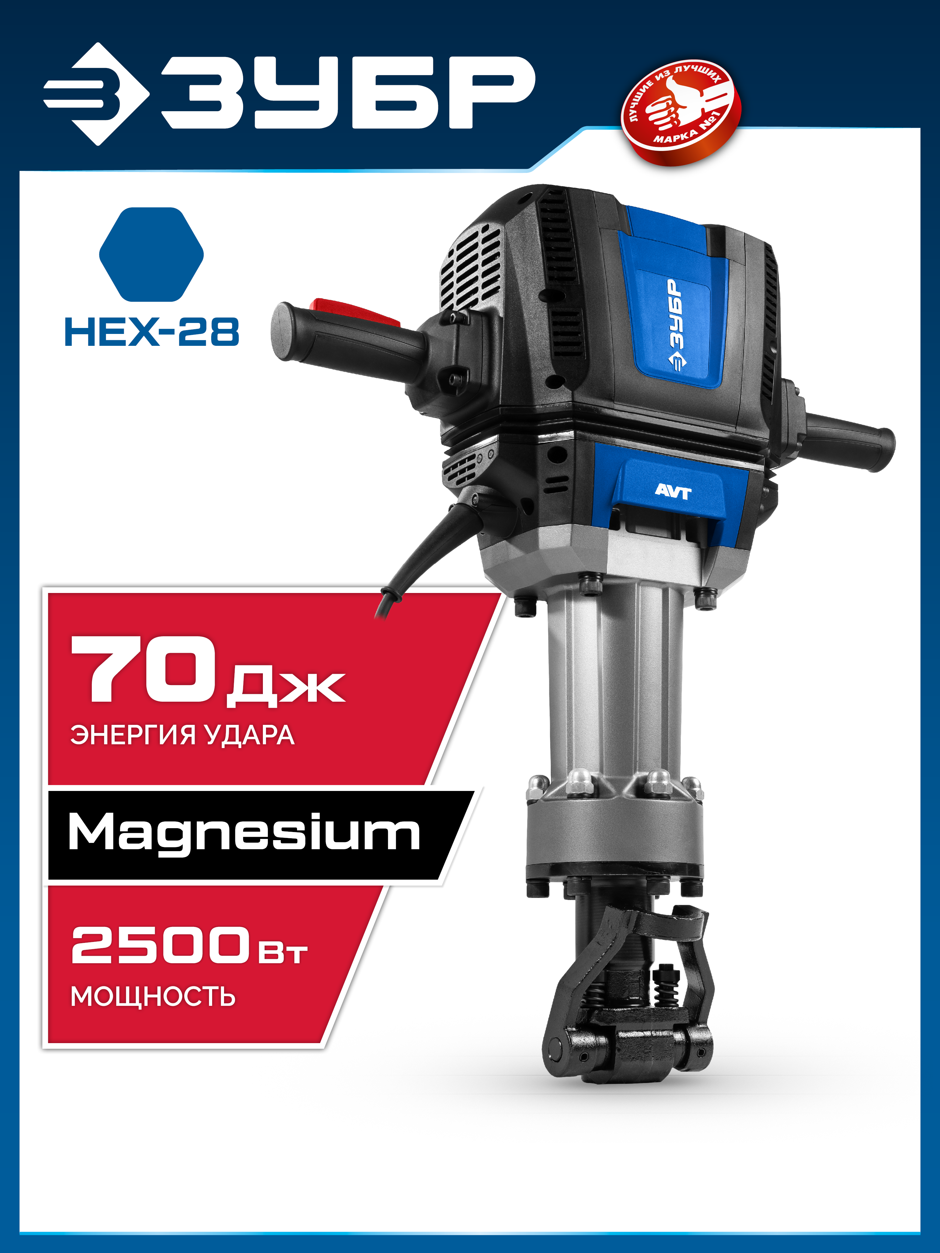 ЗУБР Бетонолом, 70 Дж, 2500 Вт, АВТ, отбойный молоток HEX-28, Профессионал (ЗМ-70-2500 ВК)