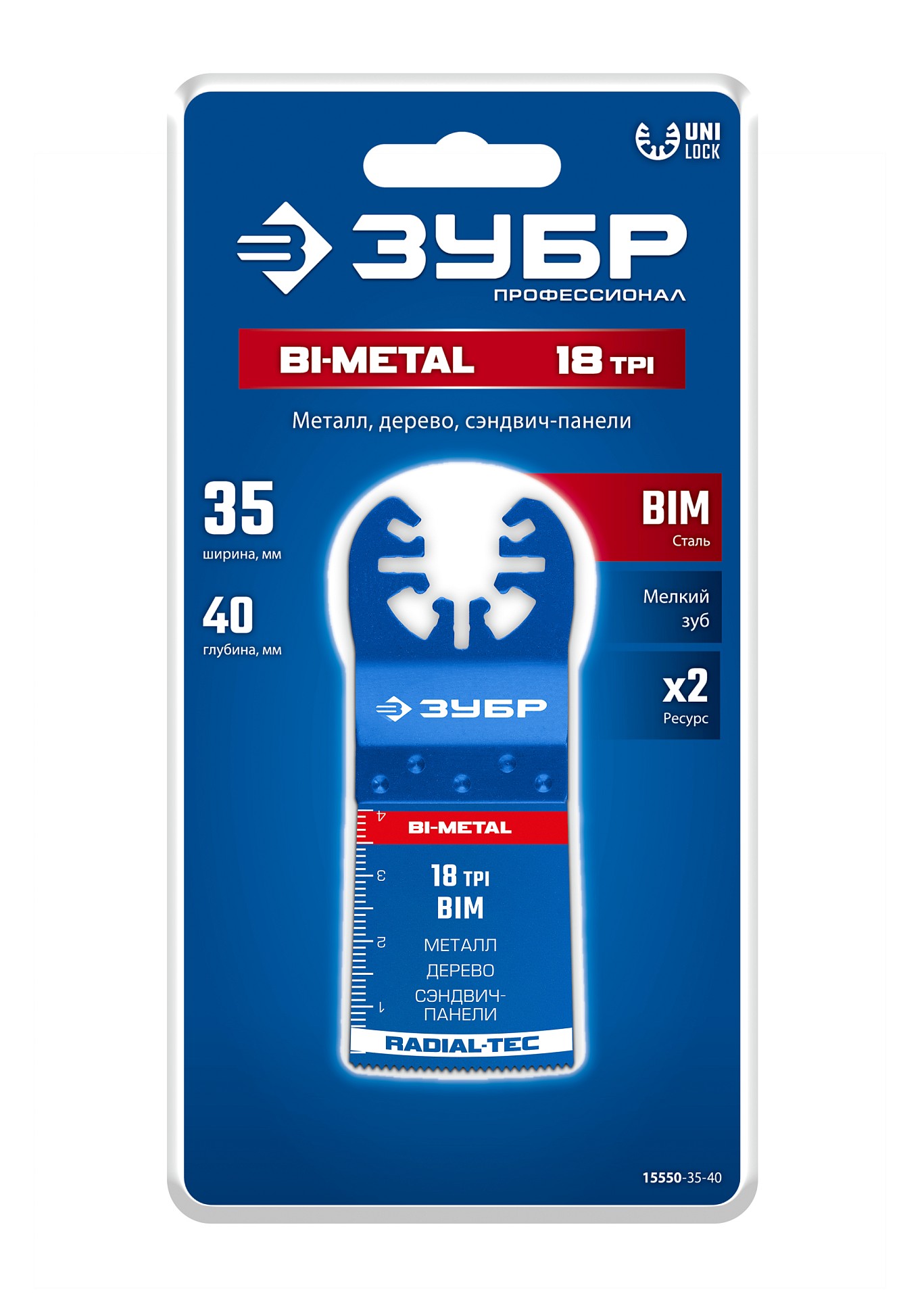 ЗУБР BIM 35x40 мм, 18TPI полотно пильное, универсальный чистый рез: металл, твердое дерево, пластик (15550-35-40)