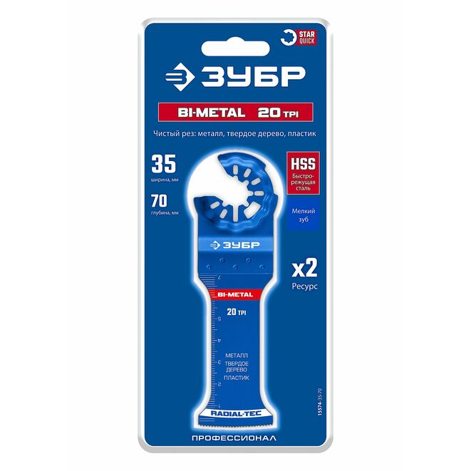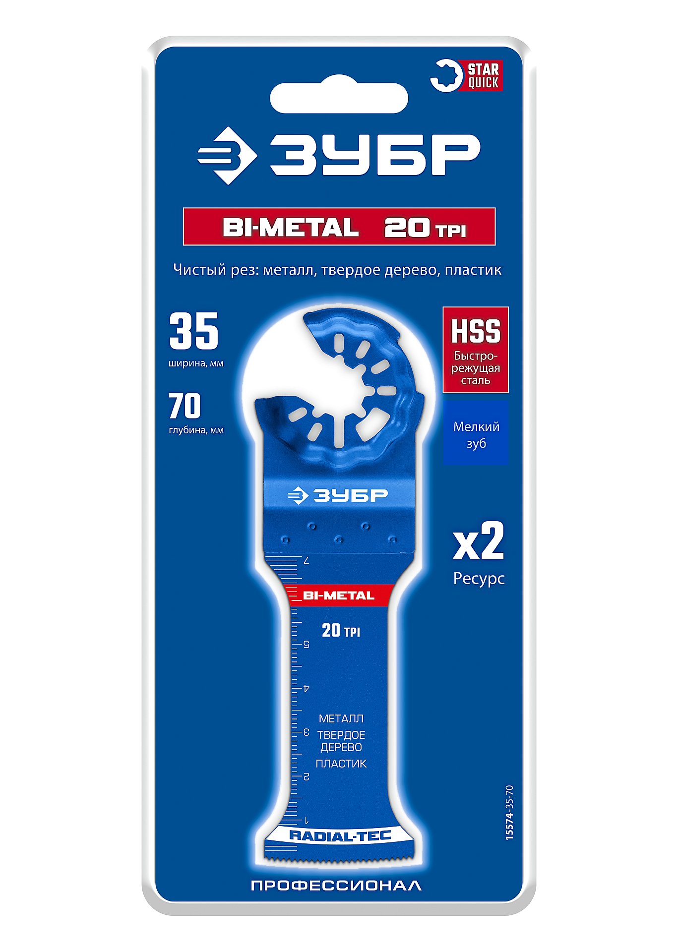 ЗУБР BIM 35x70 мм, 20TPI полотно пильное, универсальный чистый рез: металл, дерево с гвоздями, сэндвич-панель (15574-35-70)