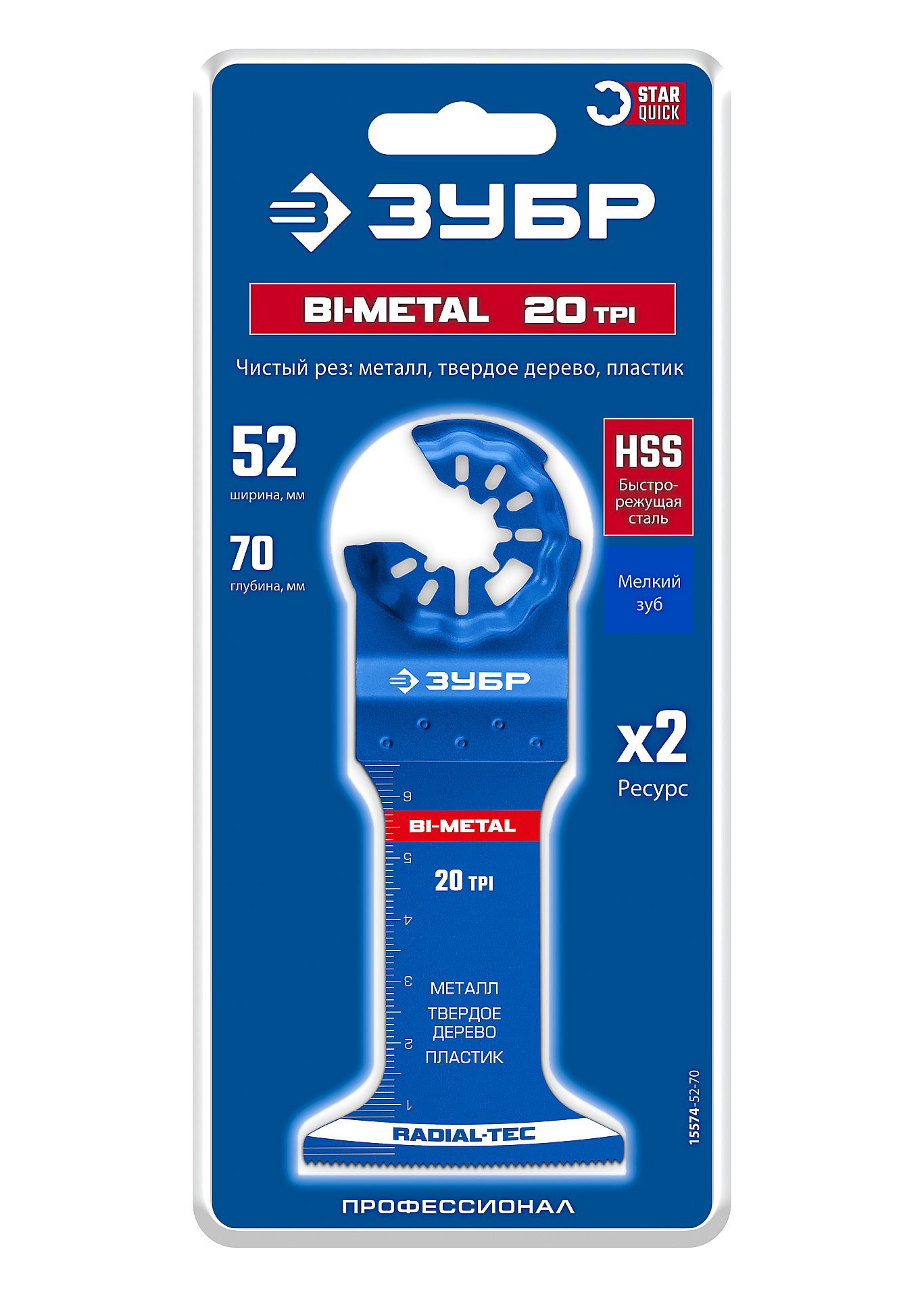 ЗУБР BIM 52x70 мм, 20TPI полотно пильное, универсальный чистый рез: металл, дерево с гвоздями, сэндвич-панель (15574-52-70)