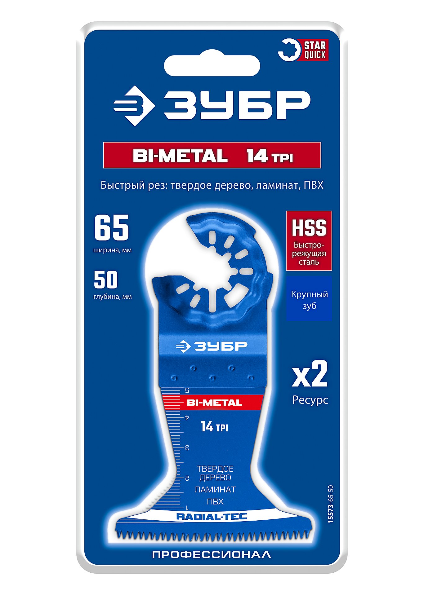 ЗУБР BIM 65x50 мм, 14TPI полотно пильное, быстрый рез: твердое дерево, ламинат, ПВХ (15573-65-50)