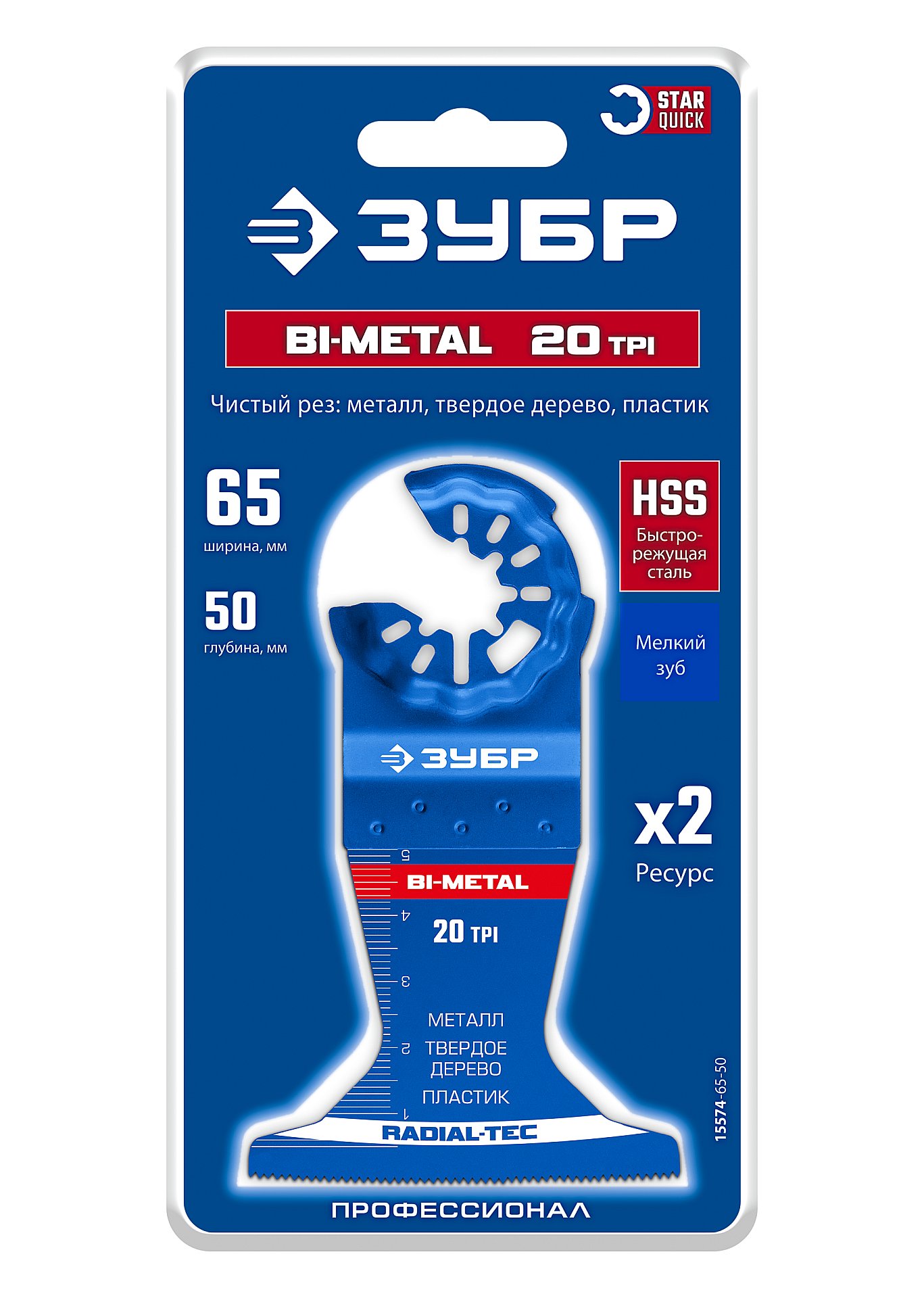 ЗУБР BIM 65x50 мм, 20TPI полотно пильное, универсальный чистый рез: металл, дерево с гвоздями, сэндвич-панель (15574-65-50)