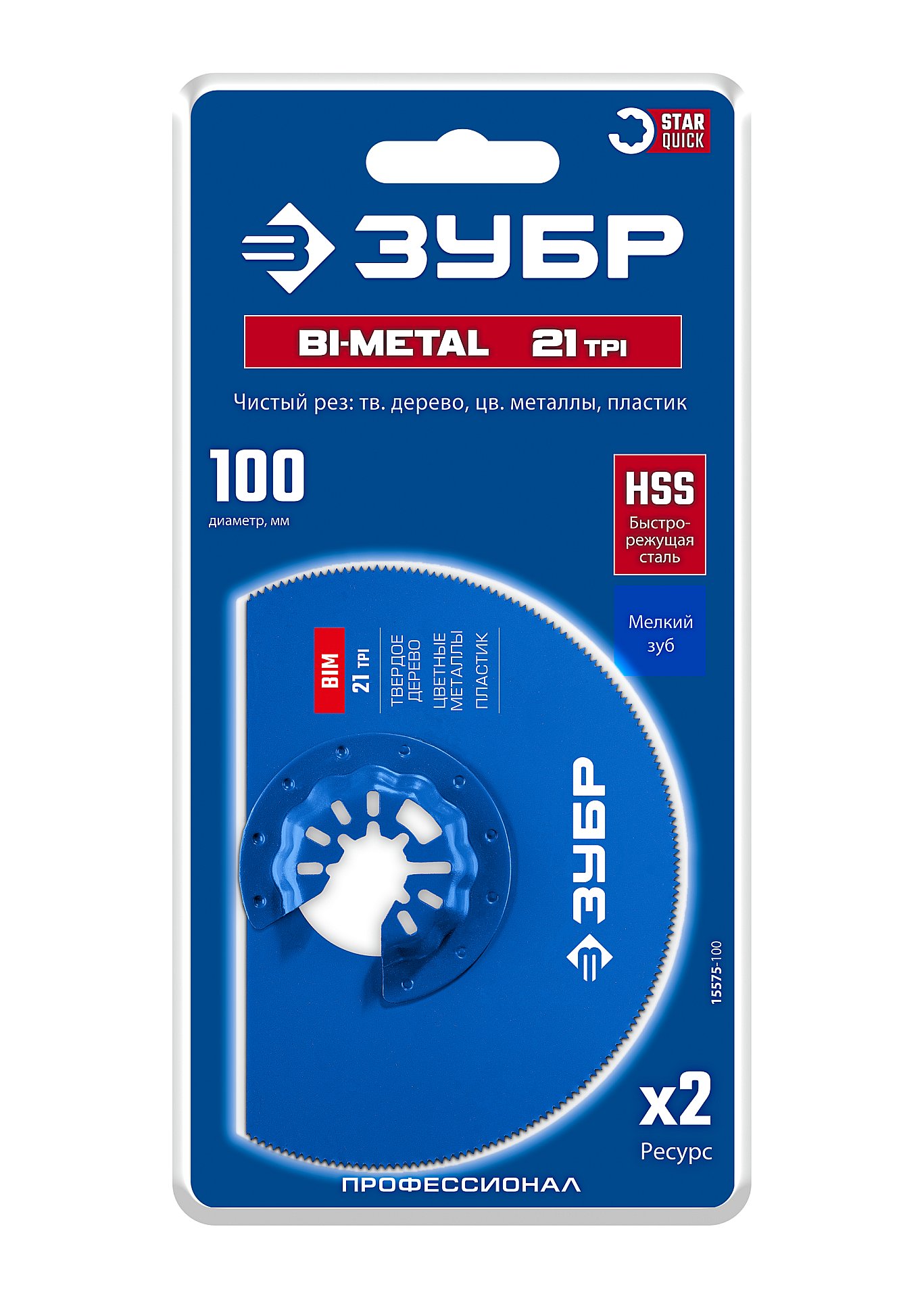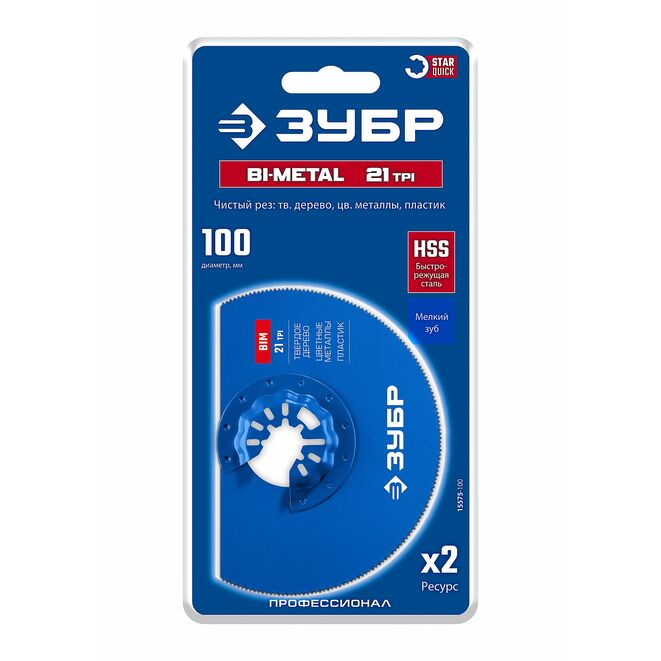 ЗУБР BIM d 100 мм, 21TPI полотно пильное, универсальный чистый рез: твердое дерево, цветные металлы, пластик (15575-100)