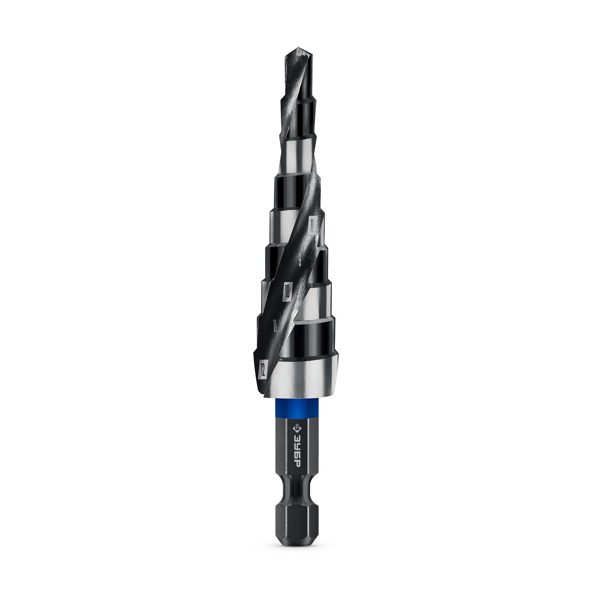 ЗУБР BLACK FORCE 4-12 мм, 9 ступеней, винтовая проточка, сверло ступенчатое, Профессионал (29671-4-12-9)