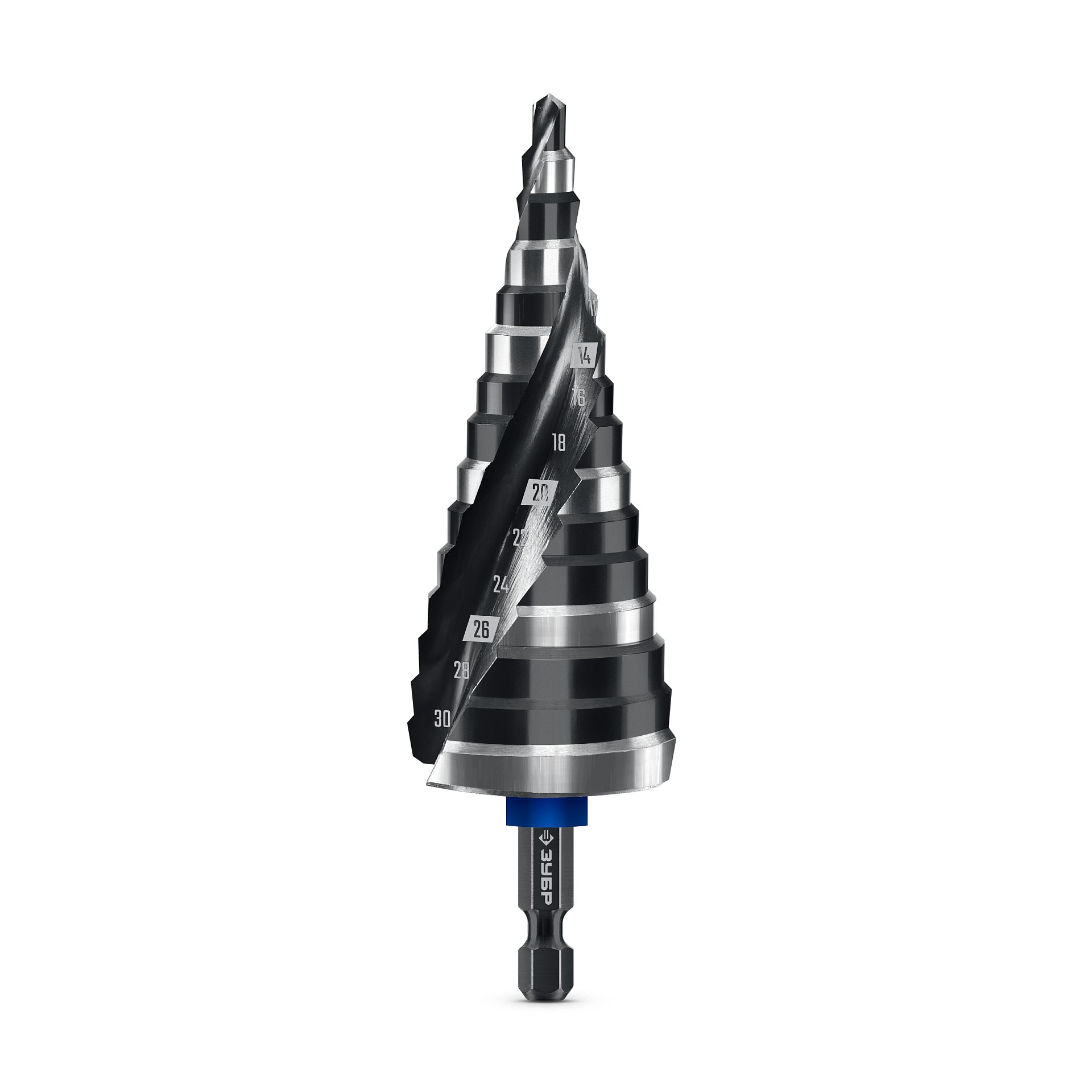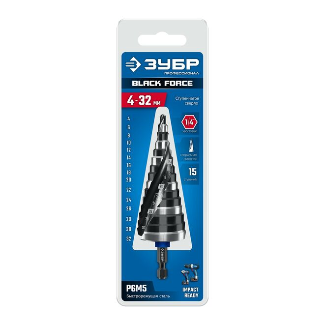 ЗУБР BLACK FORCE 4-32 мм, 15 ступеней, винтовая проточка, сверло ступенчатое, Профессионал (29671-4-32-15)