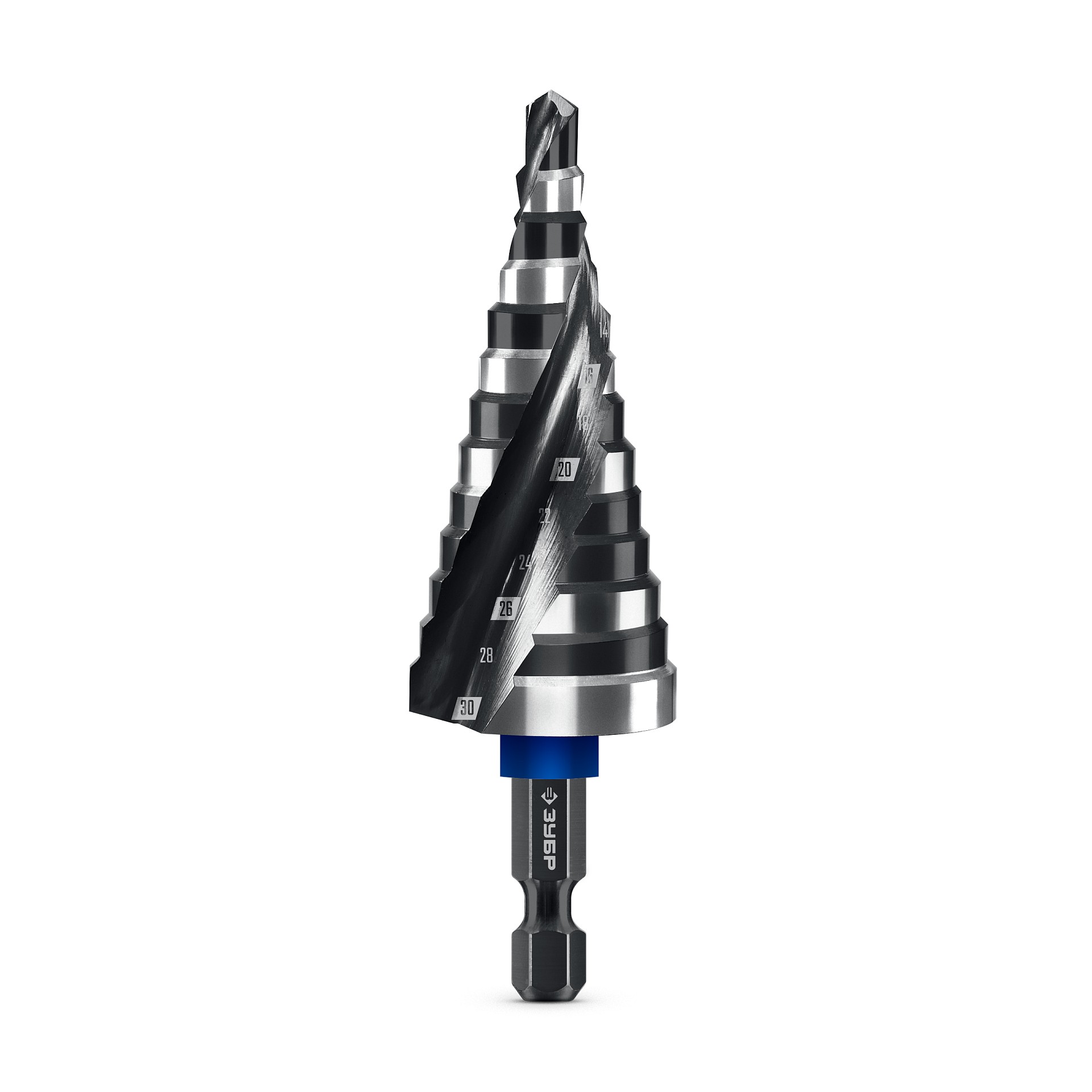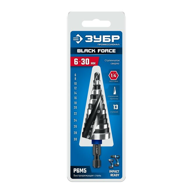 ЗУБР BLACK FORCE 6-30 мм, 13 ступеней, винтовая проточка, сверло ступенчатое, Профессионал (29671-6-30-13)