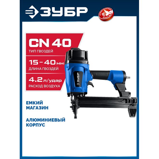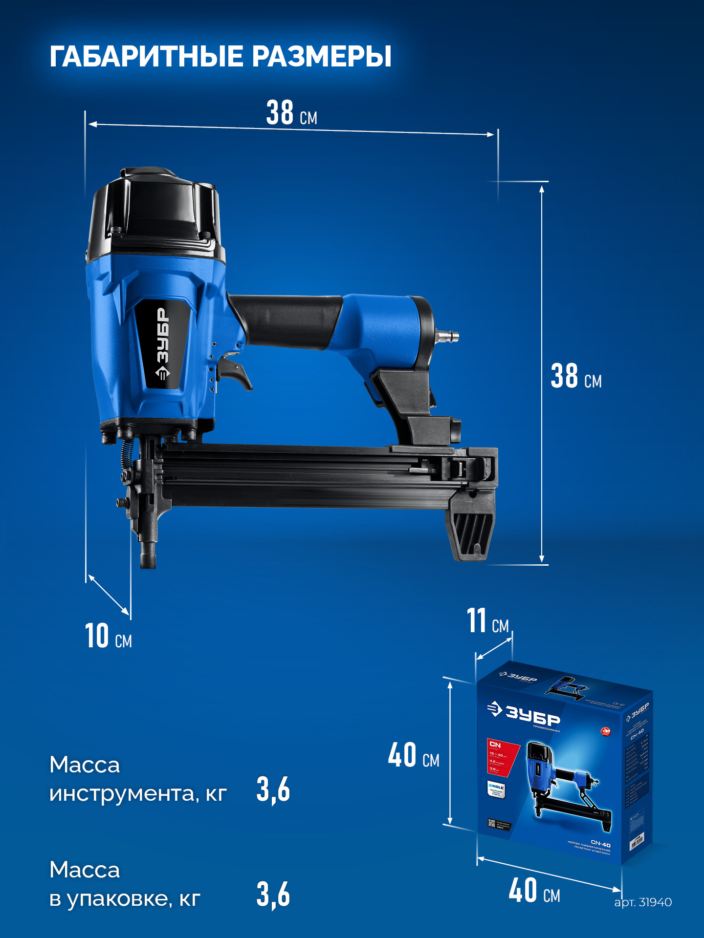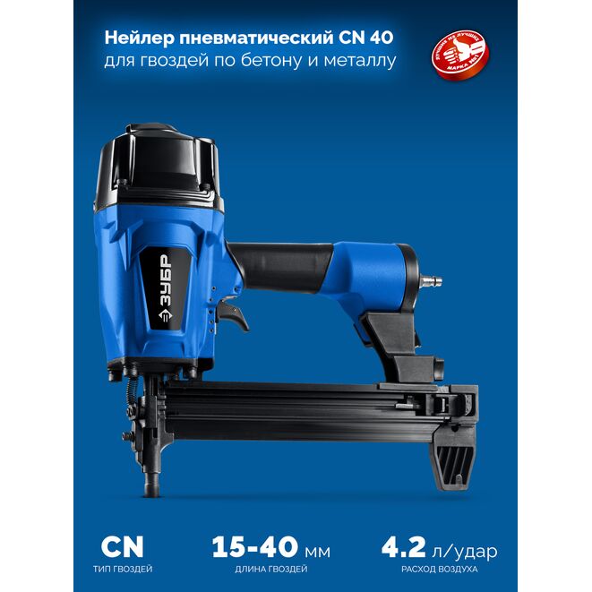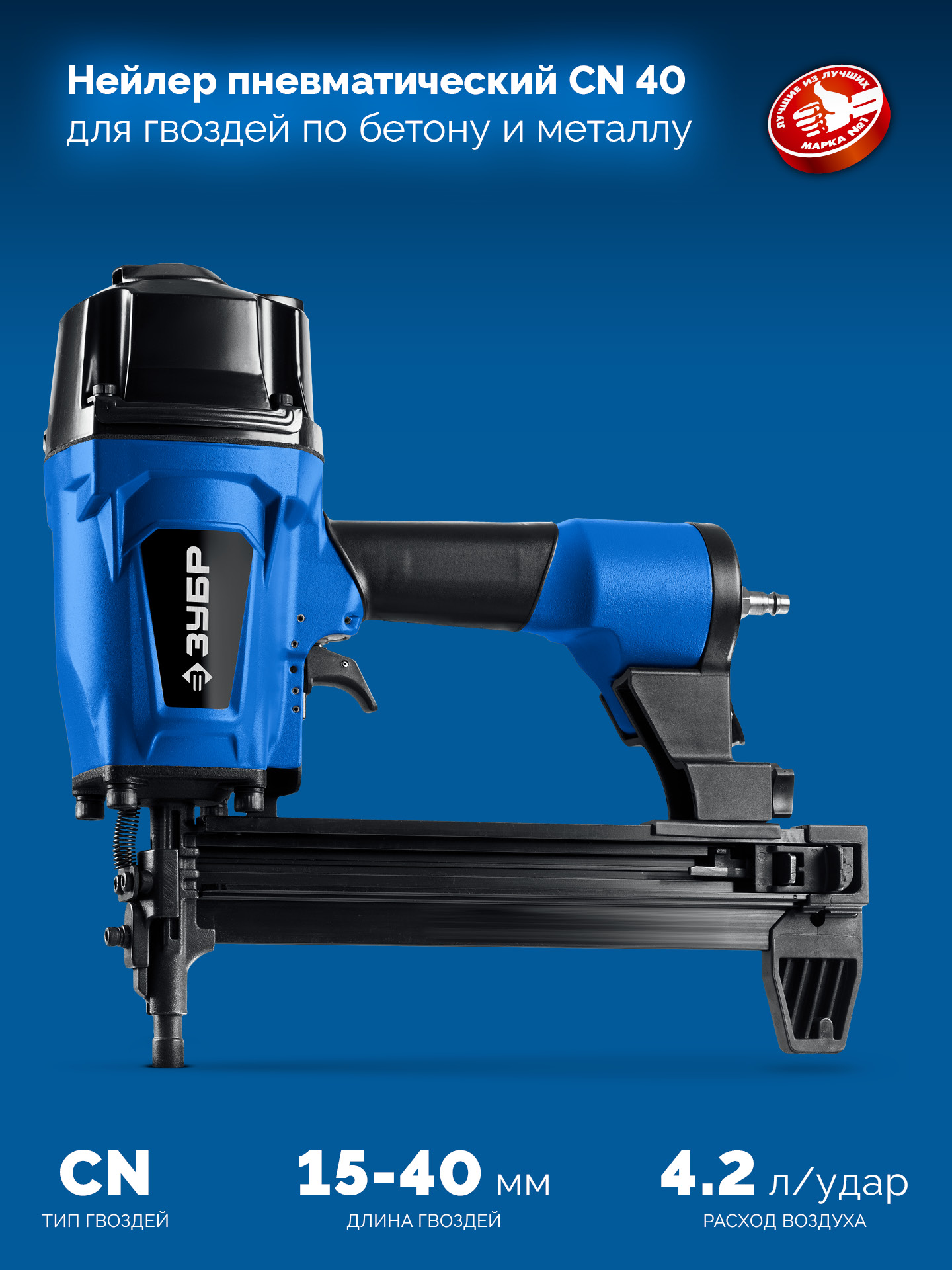 ЗУБР CN-40, пневматический нейлер для гвоздей по бетону и металлу Профессионал (31940)