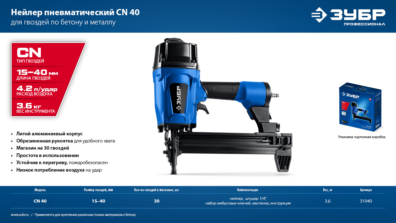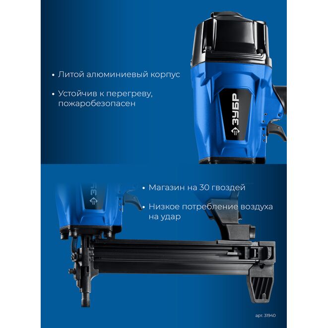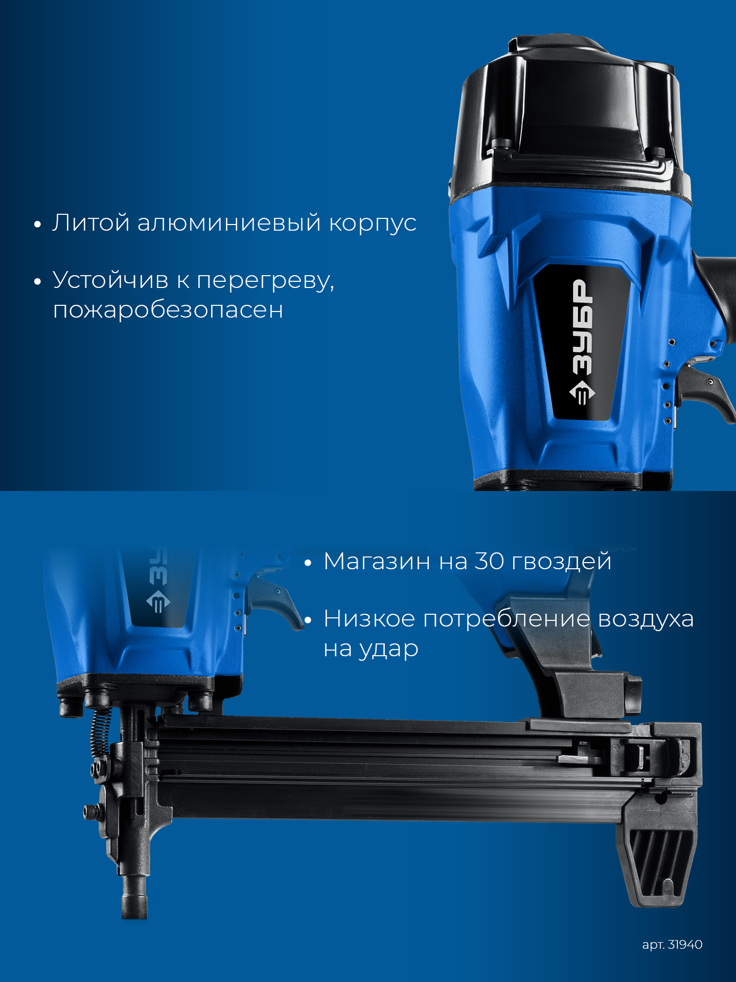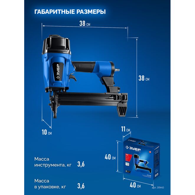 ЗУБР CN-40, пневматический нейлер для гвоздей по бетону и металлу Профессионал (31940)