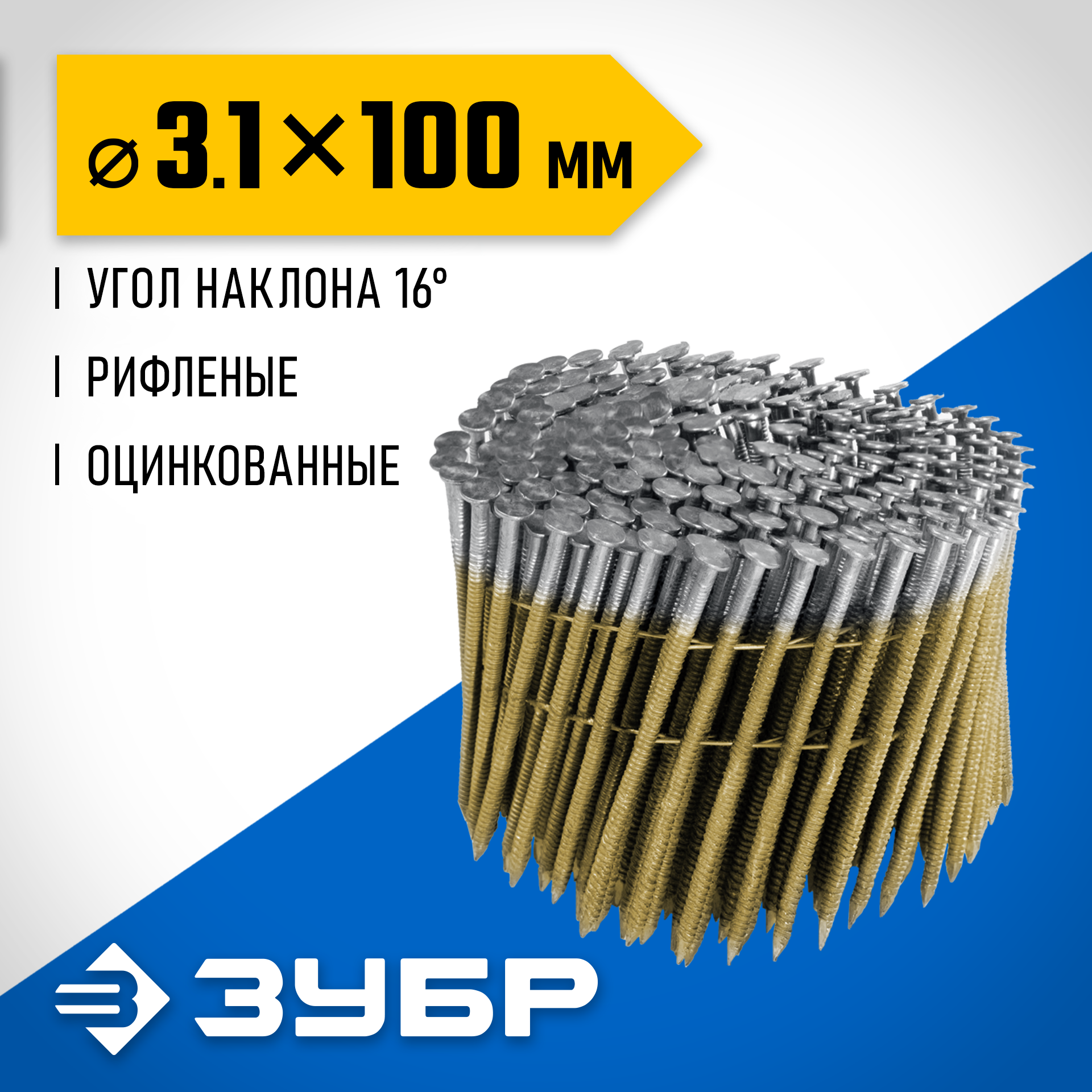 ЗУБР CNW 100 х 3.1 мм, барабанные гвозди рифленые оцинкованные, 2400 шт (305383-100)
