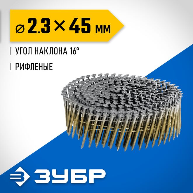 ЗУБР CNW 45 х 2.3 мм, барабанные гвозди рифленые, 10800 шт (305382-45)