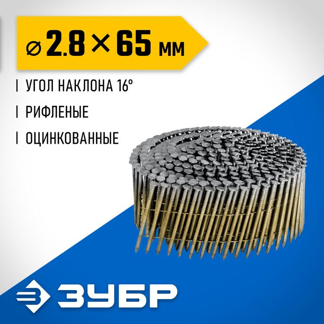 ЗУБР CNW 65 х 2.8 мм, барабанные гвозди рифленые оцинкованные, 6000 шт (305383-65)