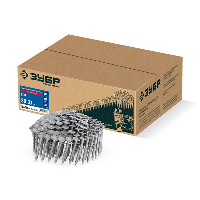 ЗУБР CRN 38 х 3.1 мм, барабанные гвозди кровельные оцинкованные, 5400 шт (305385-38)
