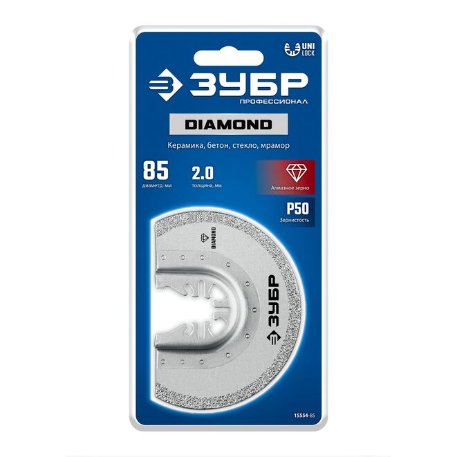 ЗУБР DIAMOND 85x2.0 мм полотно пильное с алмазным зерном Р50: керамика, бетон, кирпич (15554-85)
