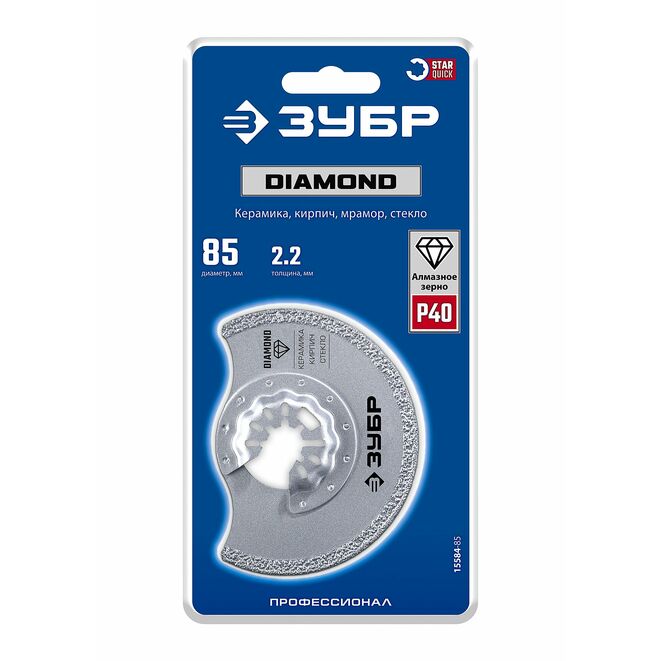 ЗУБР DIAMOND 85x2.2 мм полотно пильное с алмазным зерном Р40: керамика, бетон, кирпич (15584-85)