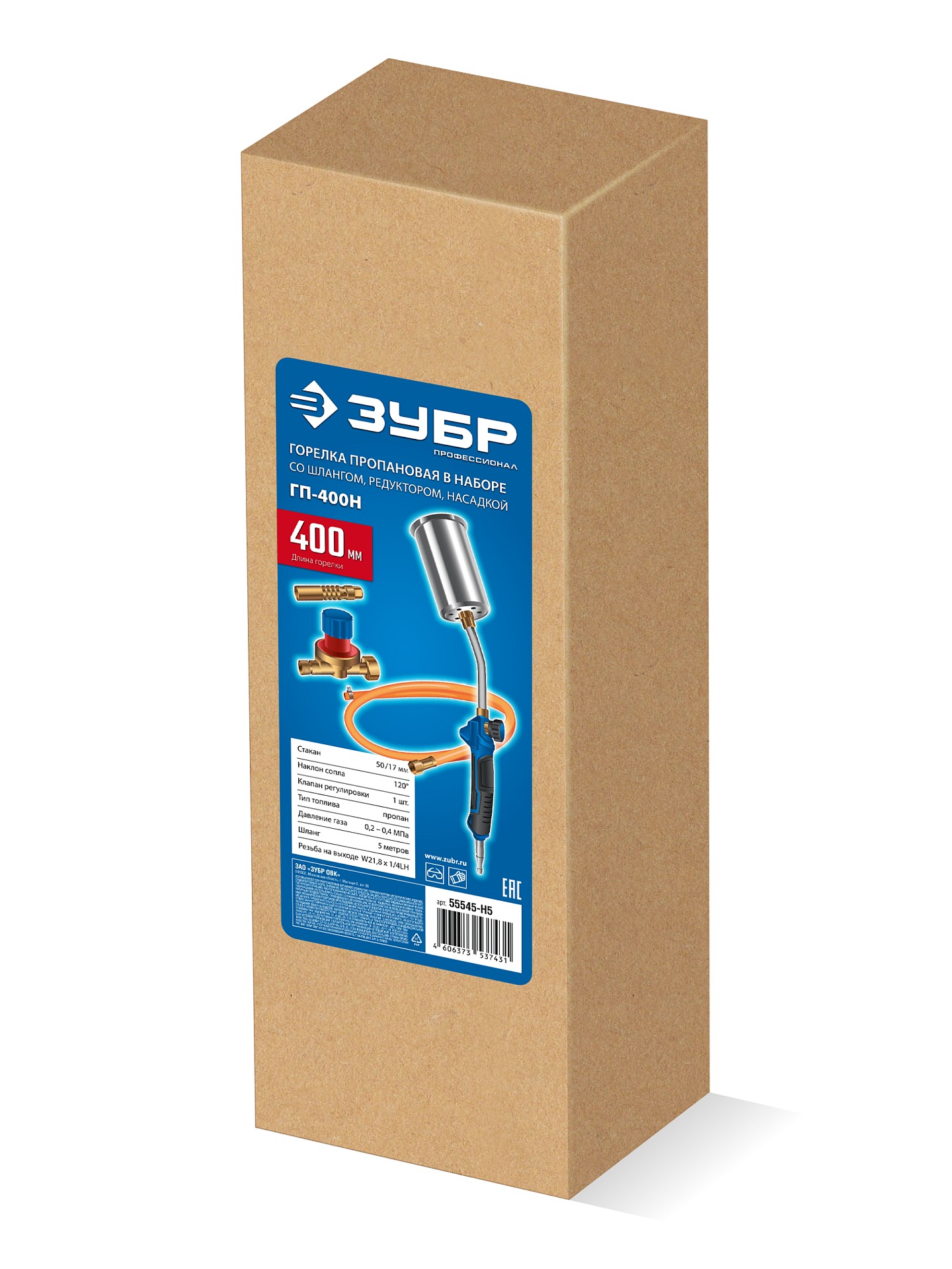 ЗУБР ГП-400Н, 400мм, стаканы 50мм /17мм, шланг 5м, редуктор, пропановая горелка в наборе Профессионал (55545-H5)