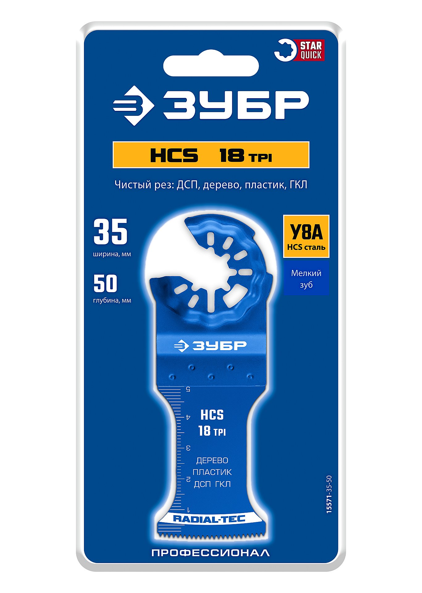 ЗУБР HCS 35x50 мм, 18TPI полотно пильное, универсальный чистый рез: дерево, пластик, ДСП, ГКЛ (15571-35-50)