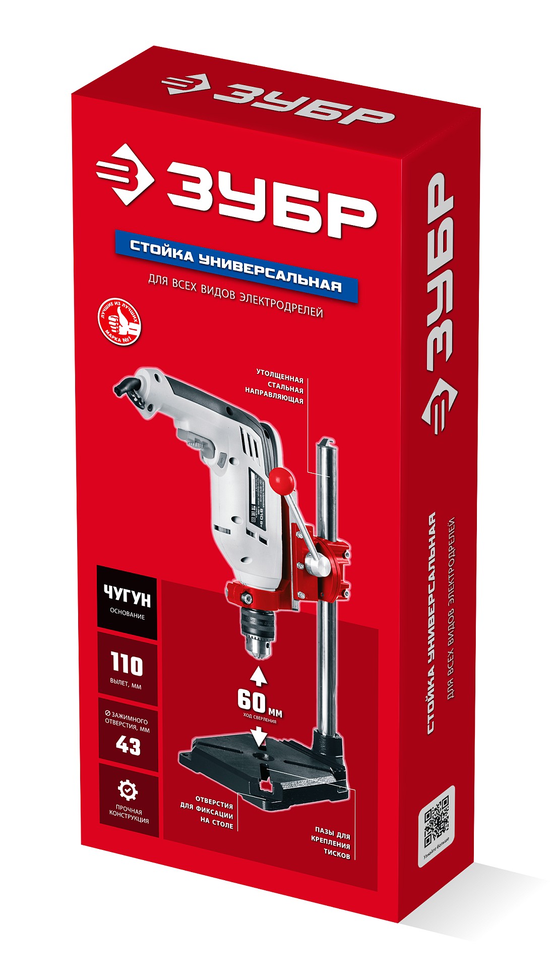 ЗУБР ход 60 мм, вылет 110мм, чугун, универсальная мощная cтойка для дрели (32250)