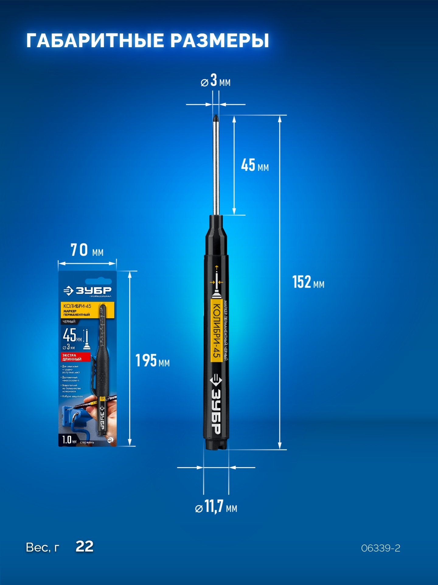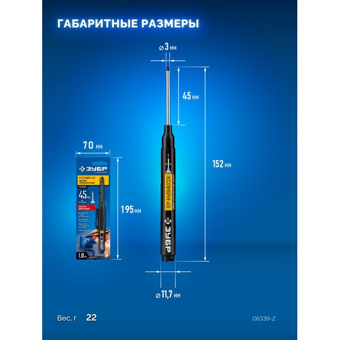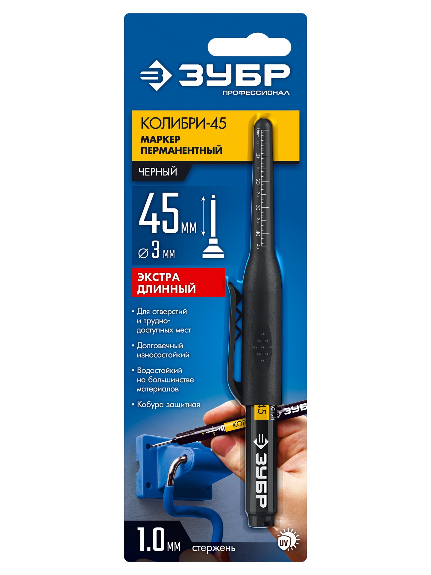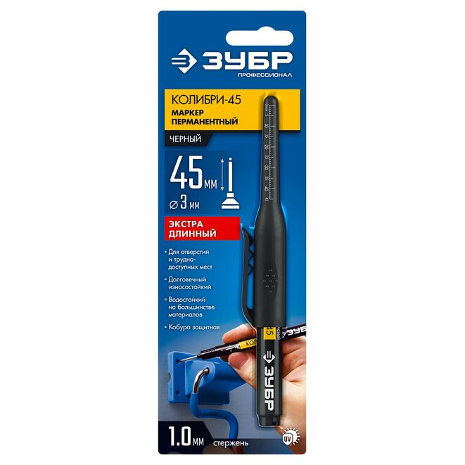 ЗУБР Колибри-45 черный, наконечник L 45 мм, ø 3 мм, перманентный маркер для отверстий (06339-2)