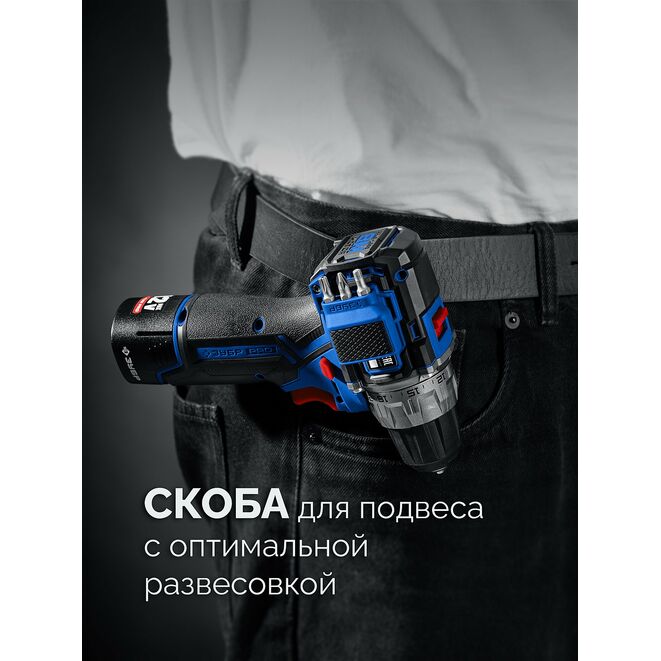 ЗУБР КОМБИ, 12 В, 45 Нм, 3 насадки-патрона, 2 АКБ (2 А∙ч), кейс, бесщеточная дрель-шуруповерт, Профессионал (DB-125-22)