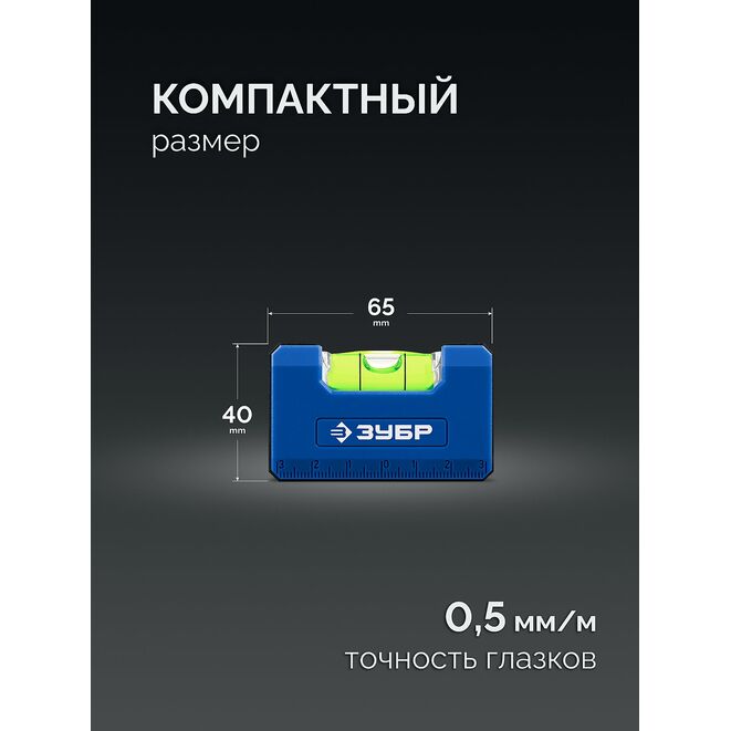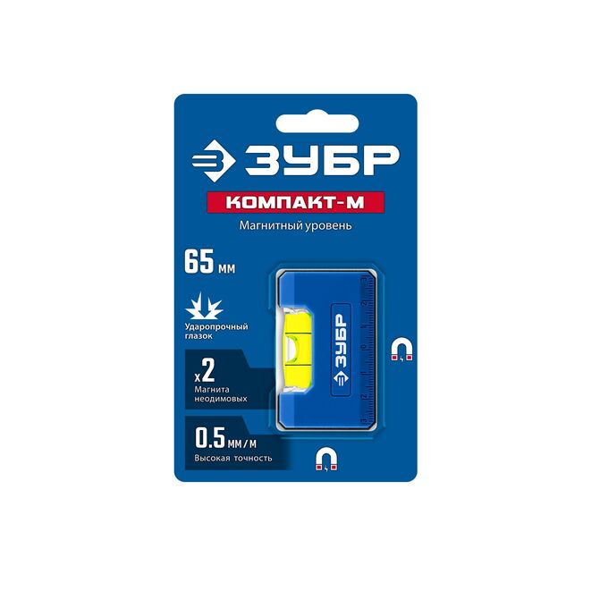 ЗУБР КОМПАКТ - 1М, 65 мм, магнитный компактный уровень, Профессионал (34550)