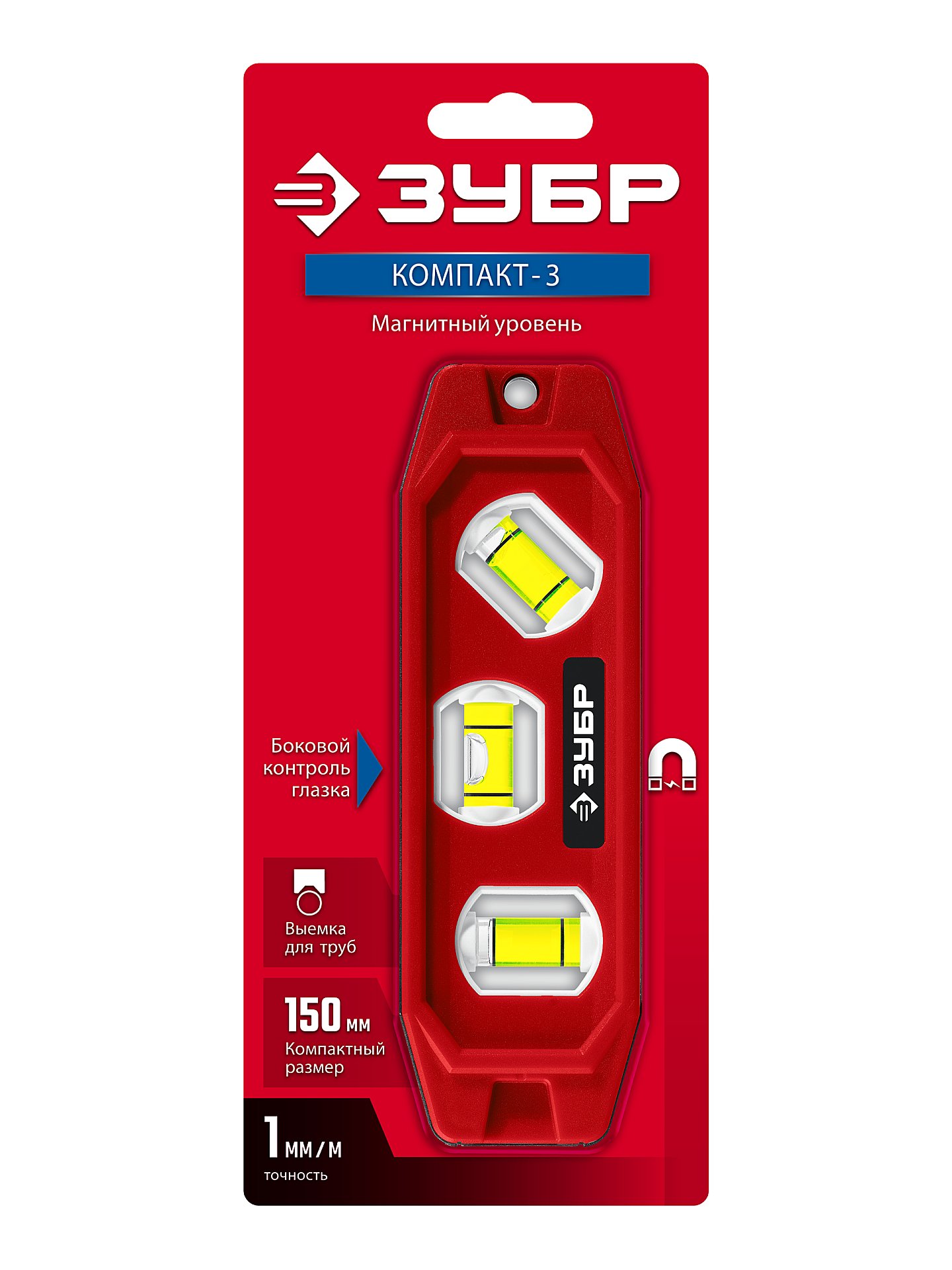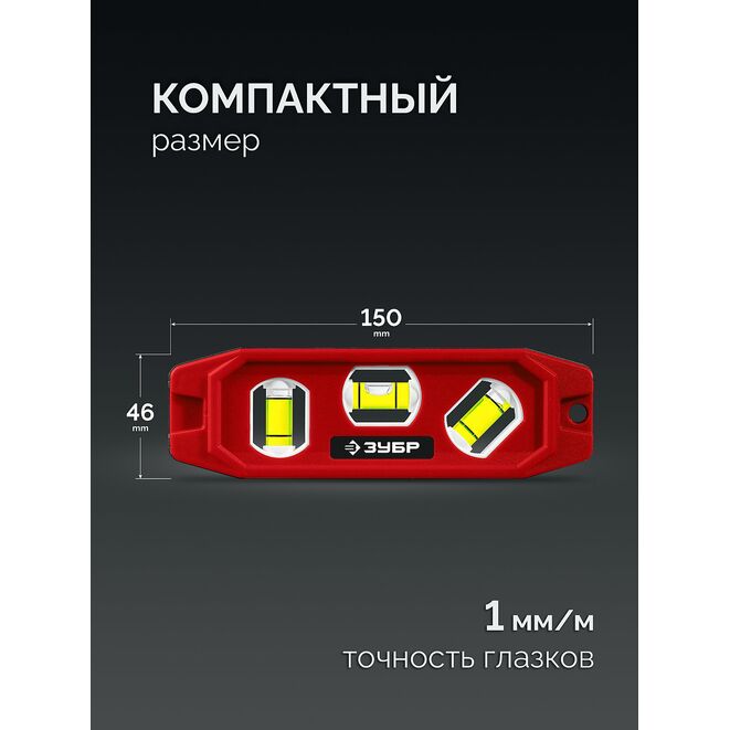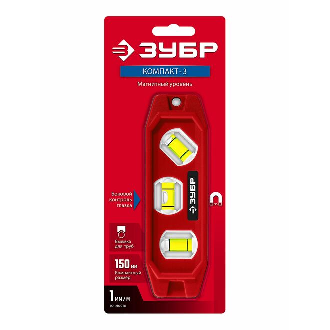 ЗУБР КОМПАКТ-3, 150 мм, пластиковый корпус, компактный магнитный уровень (3452)
