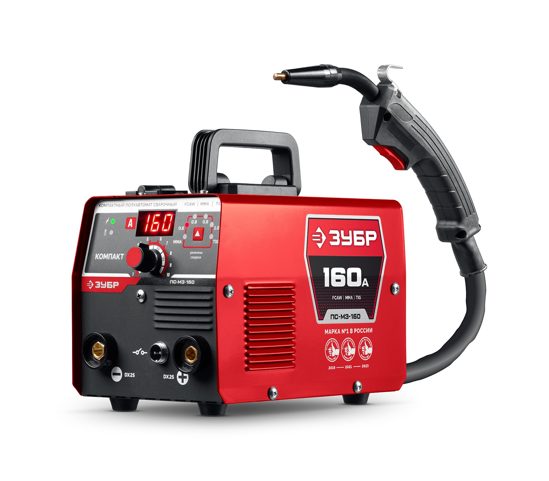 ЗУБР КОМПАКТ, FCAW, MMA, TIG, 160 А, полуавтомат сварочный, без газа, горелка ПС-160 (ПС-М3-160)