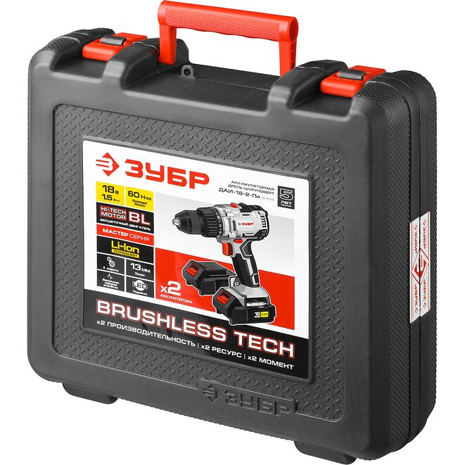 ЗУБР Li-Ion, 18 В, 2 АКБ, дрель-шуруповерт "BRUSHLESS" ДАИ-18-2-Ли КНМ4 Мастер