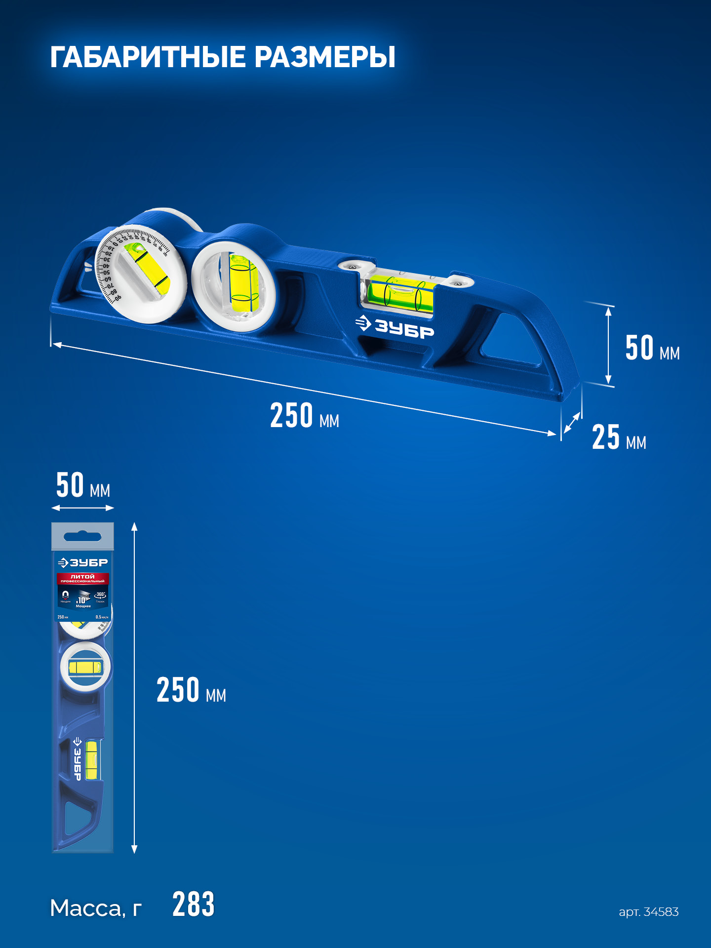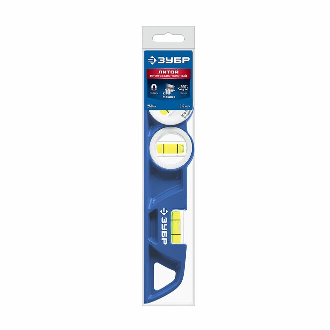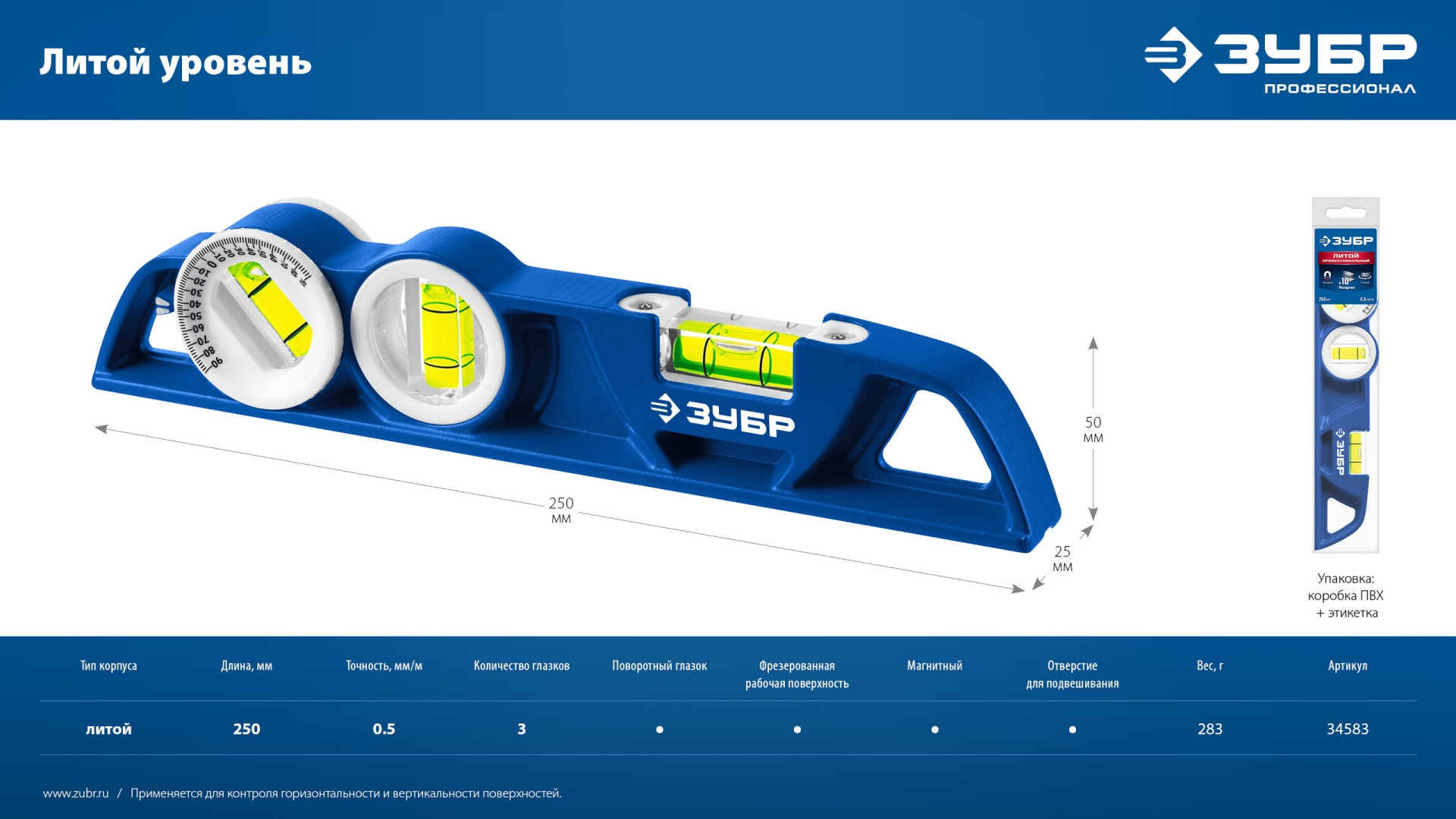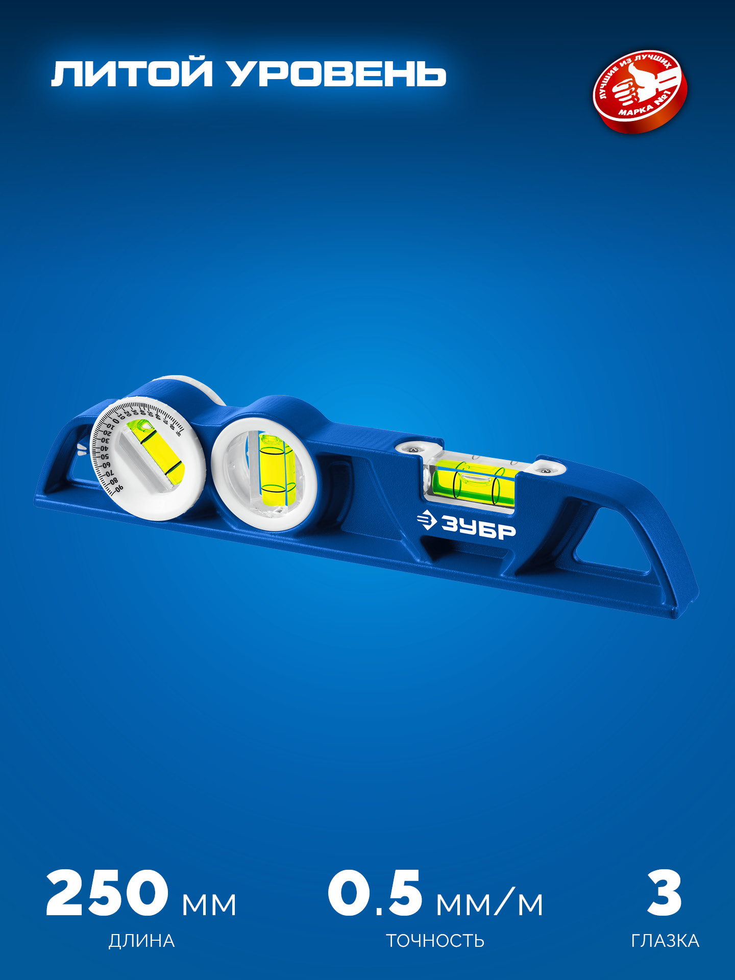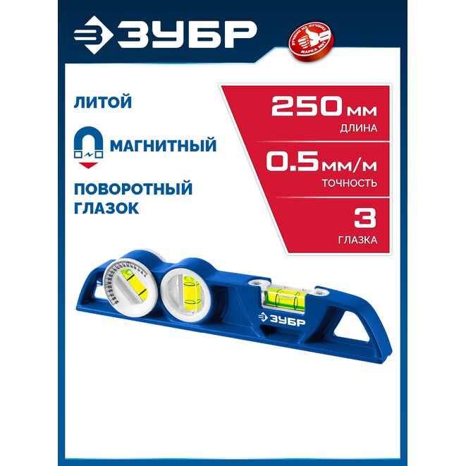 ЗУБР ЛИТОЙ 250 мм, магнитный уровень (34583)