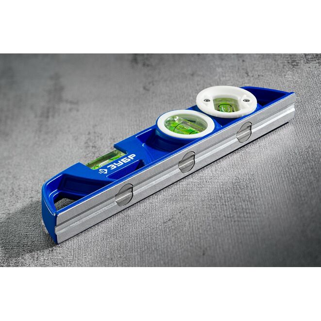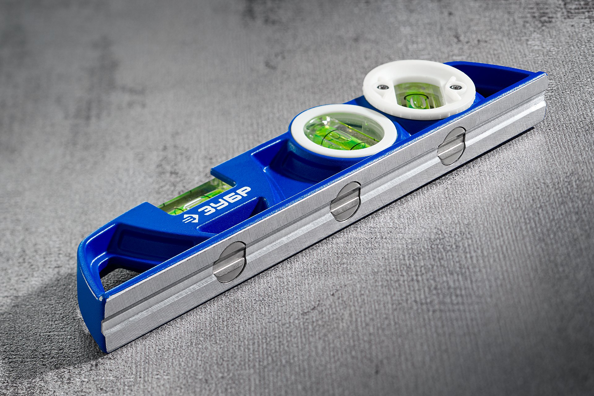 Уровень магнитный строительный ЗУБР 34583, применяется для точного контроля поверхностей в вертикальной и горизонтальной плоскостях. 3 высокоточных глазка из ударопрочного акрила. Компактный профессиональный высокоточный инструмент.Характеристики ЗУБР 34583: