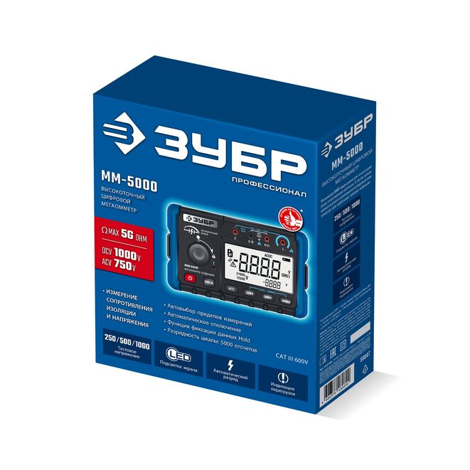 ЗУБР ММ-5000 цифровой мегаомметр, Профессионал (59847)