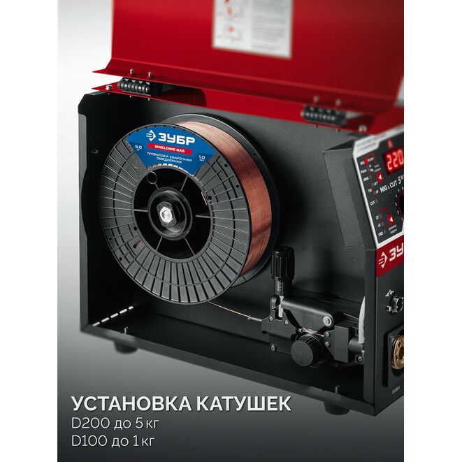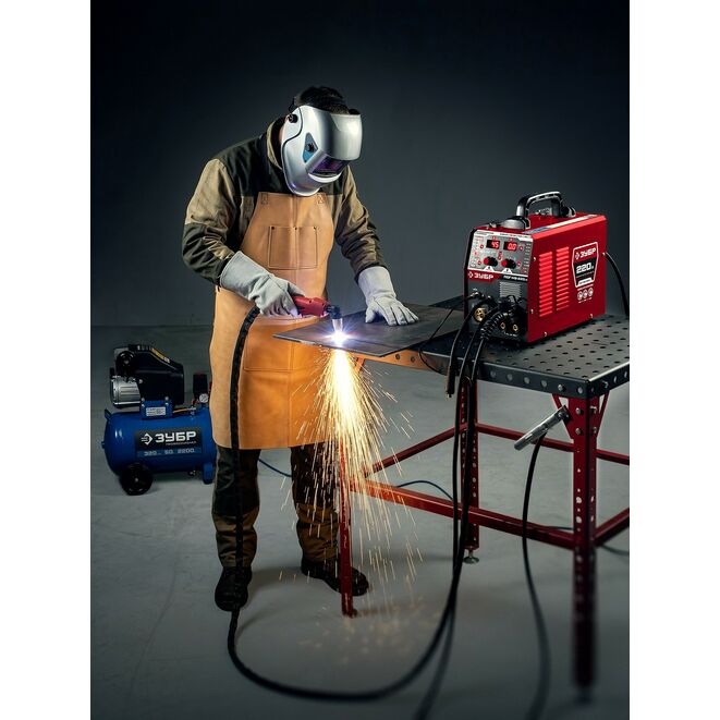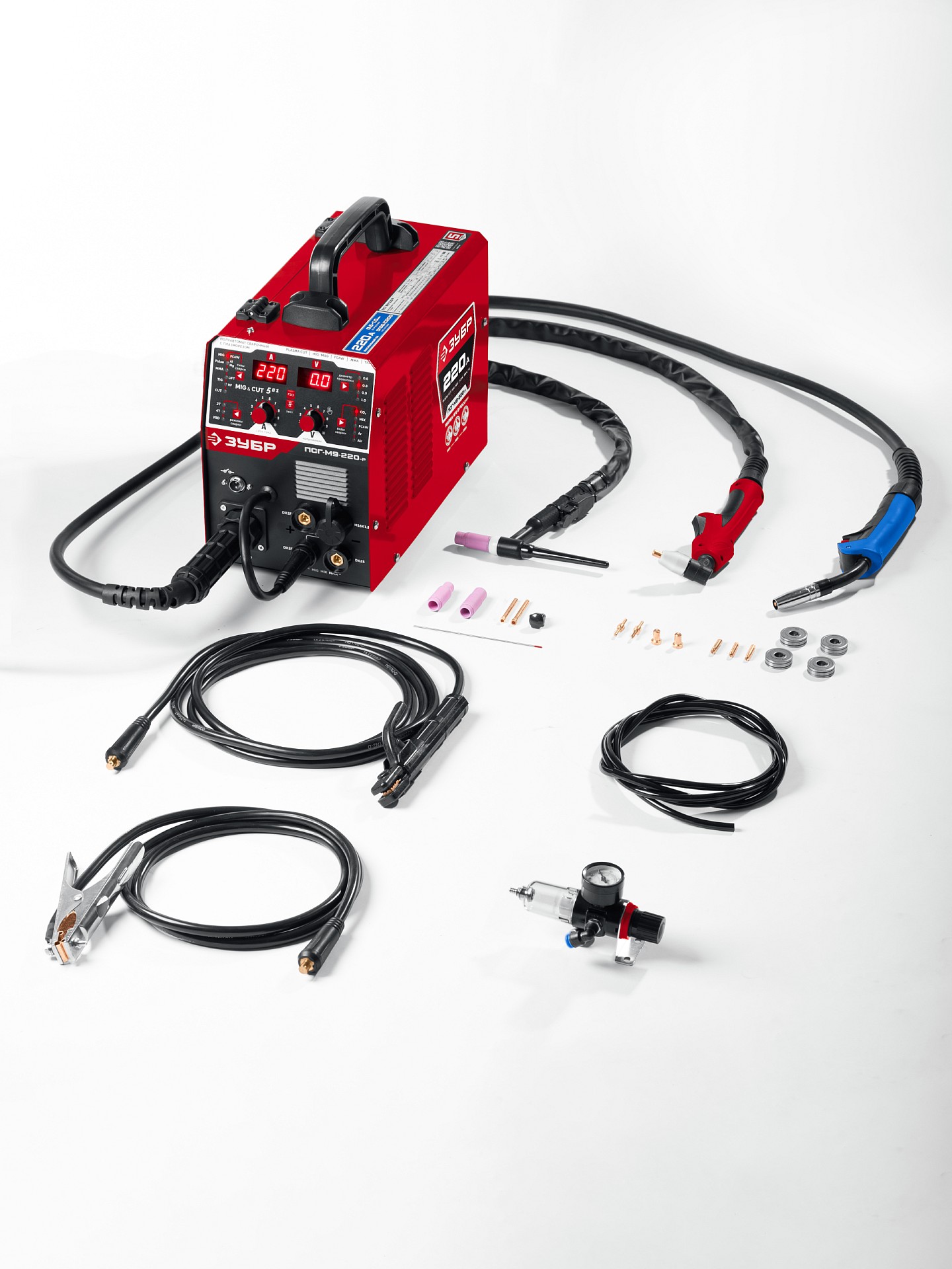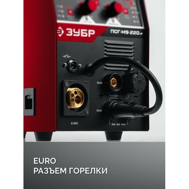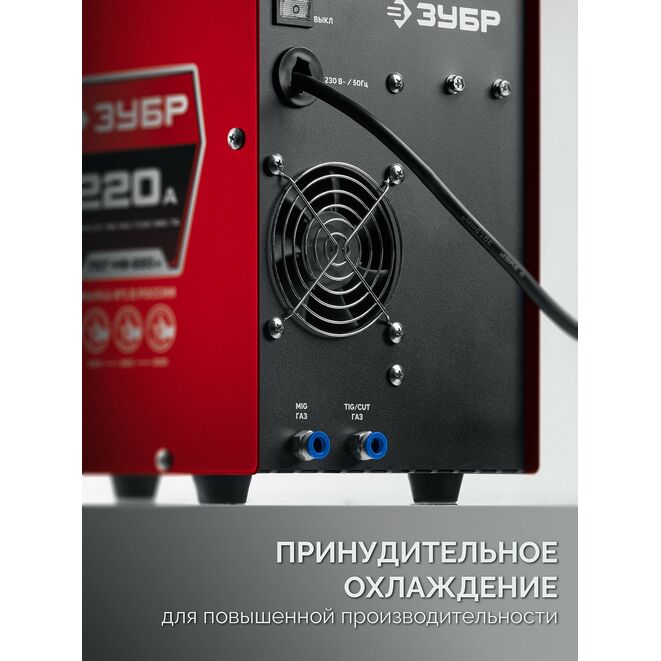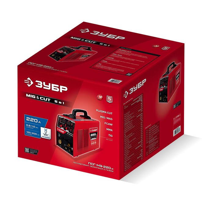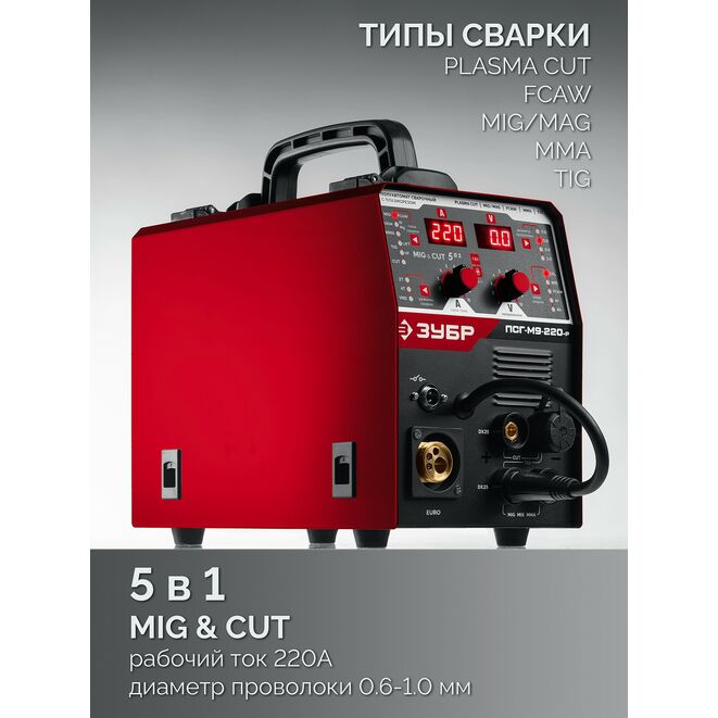 ЗУБР MIG & CUT 5-в-1, MIG / MAG, PLASMA CUT, FCAW, MMA, TIG, 220 А, полуавтомат сварочный, с газом / без газа, горелка ПСГ-220 (ПСГ-М9-220-Р)