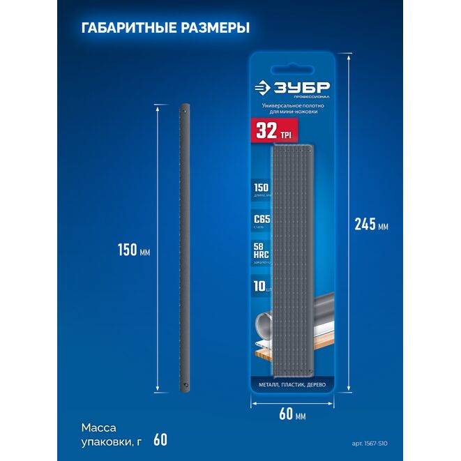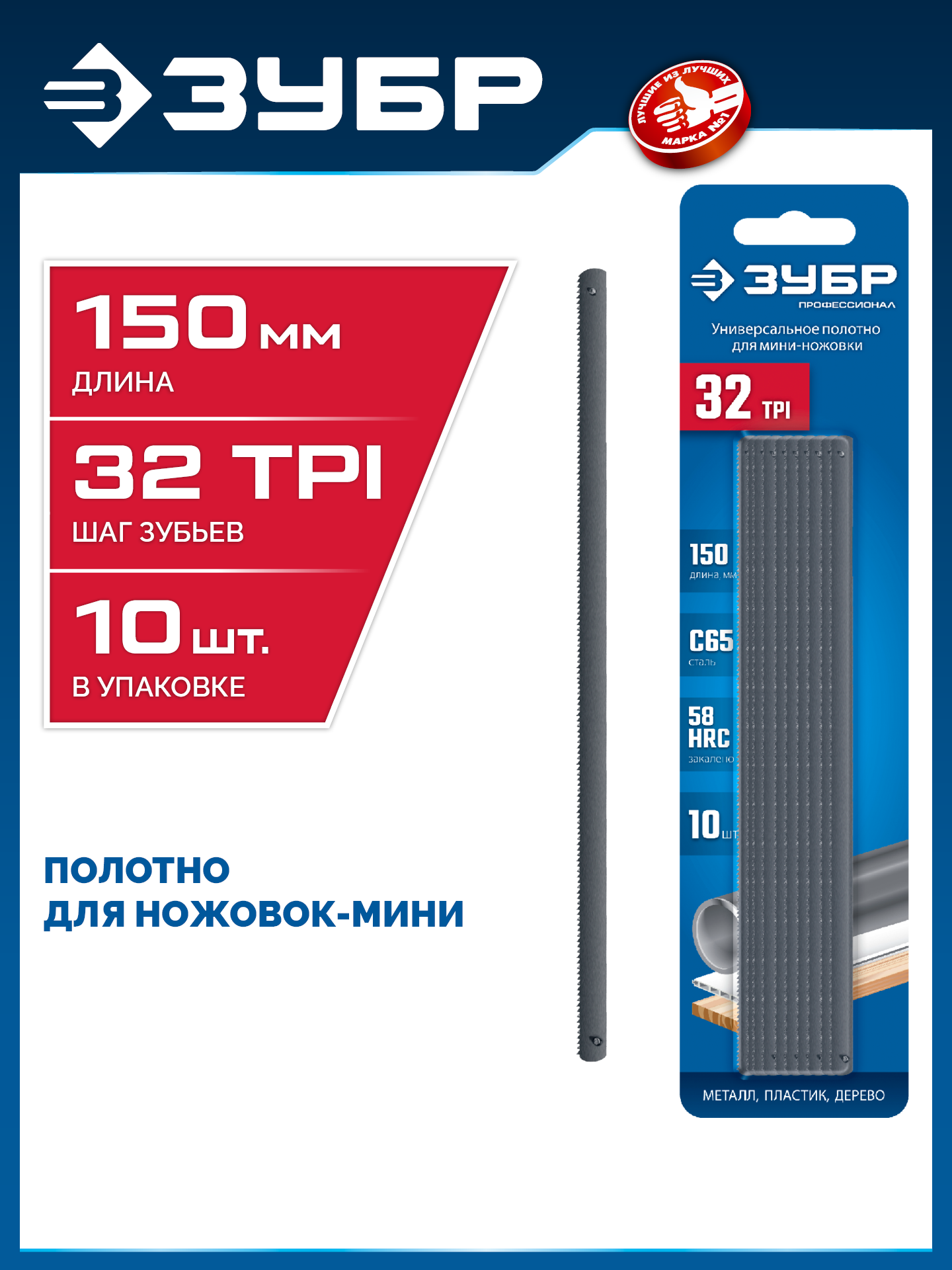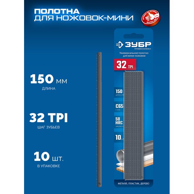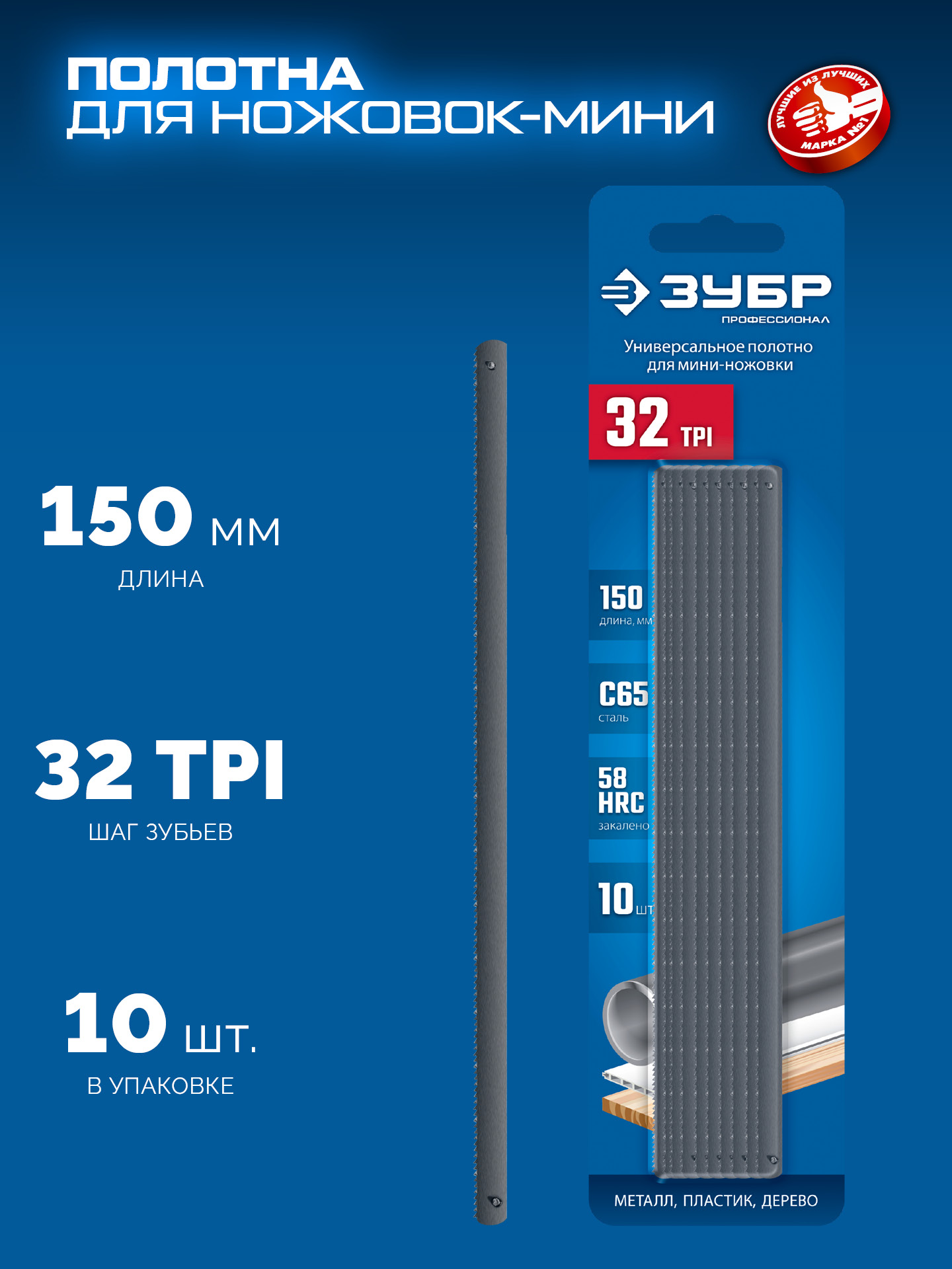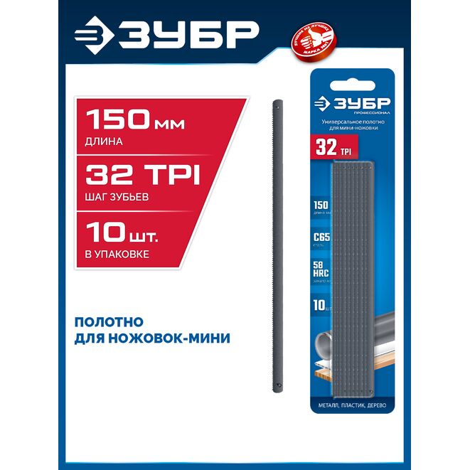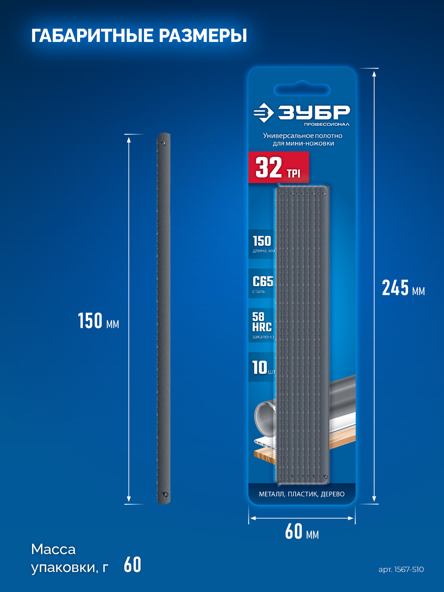 ЗУБР МИНИ 150 мм, 32TPI, 10 шт, Универсальное полотно для ножовки-мини (1567-S10)