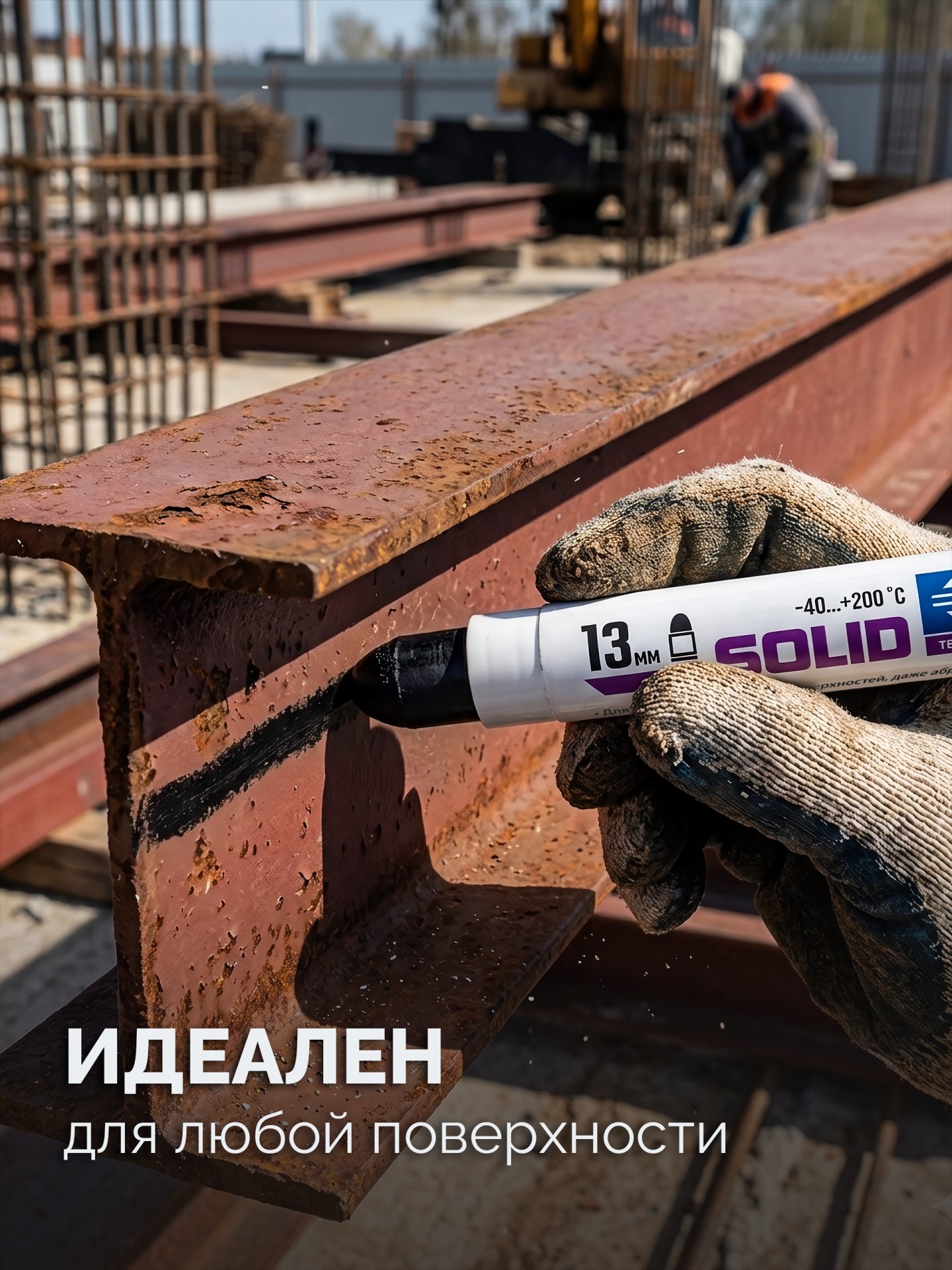 Маркер-краска твердый - профессиональный иснтрумент для разметки по любым поверхностям - гладким, шероховатым и грубым, чистым, пыльным, замаслянным и грязным, по сухим и влажным поверхностям, под дождем, снегом и даже под водой. Пастообразная краска в удобном корпусе. Подача производится механизмом внизу корпуса.Применение
