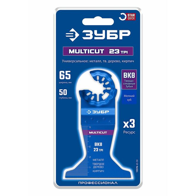 ЗУБР MULTICUT ВК8 23TPI, 65x50 мм полотно пильное: металл, дерево, твердые материалы (15576-65-50)