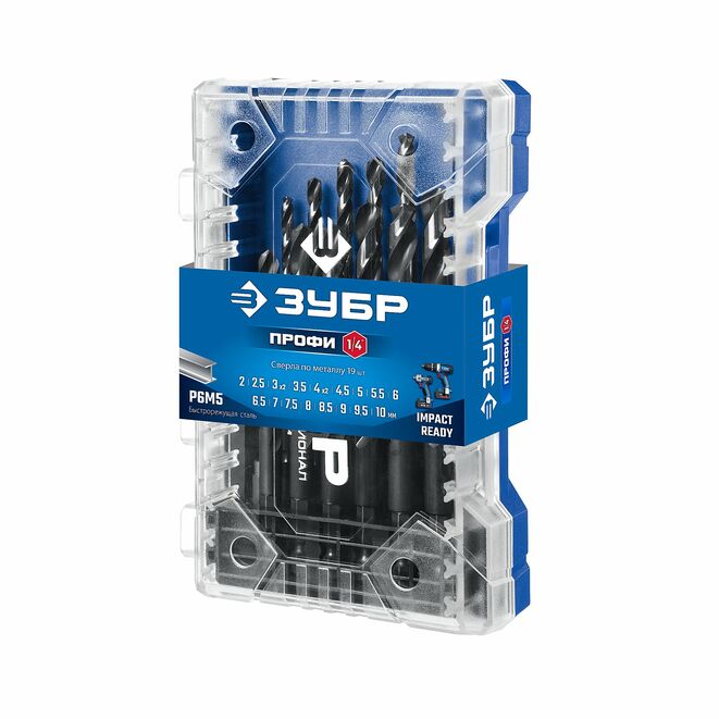 ЗУБР НЕХ-1/4", 19 шт, набор сверл по металлу для винтовёртов и шуруповертов IMPACT READY (29623-H19_z02)