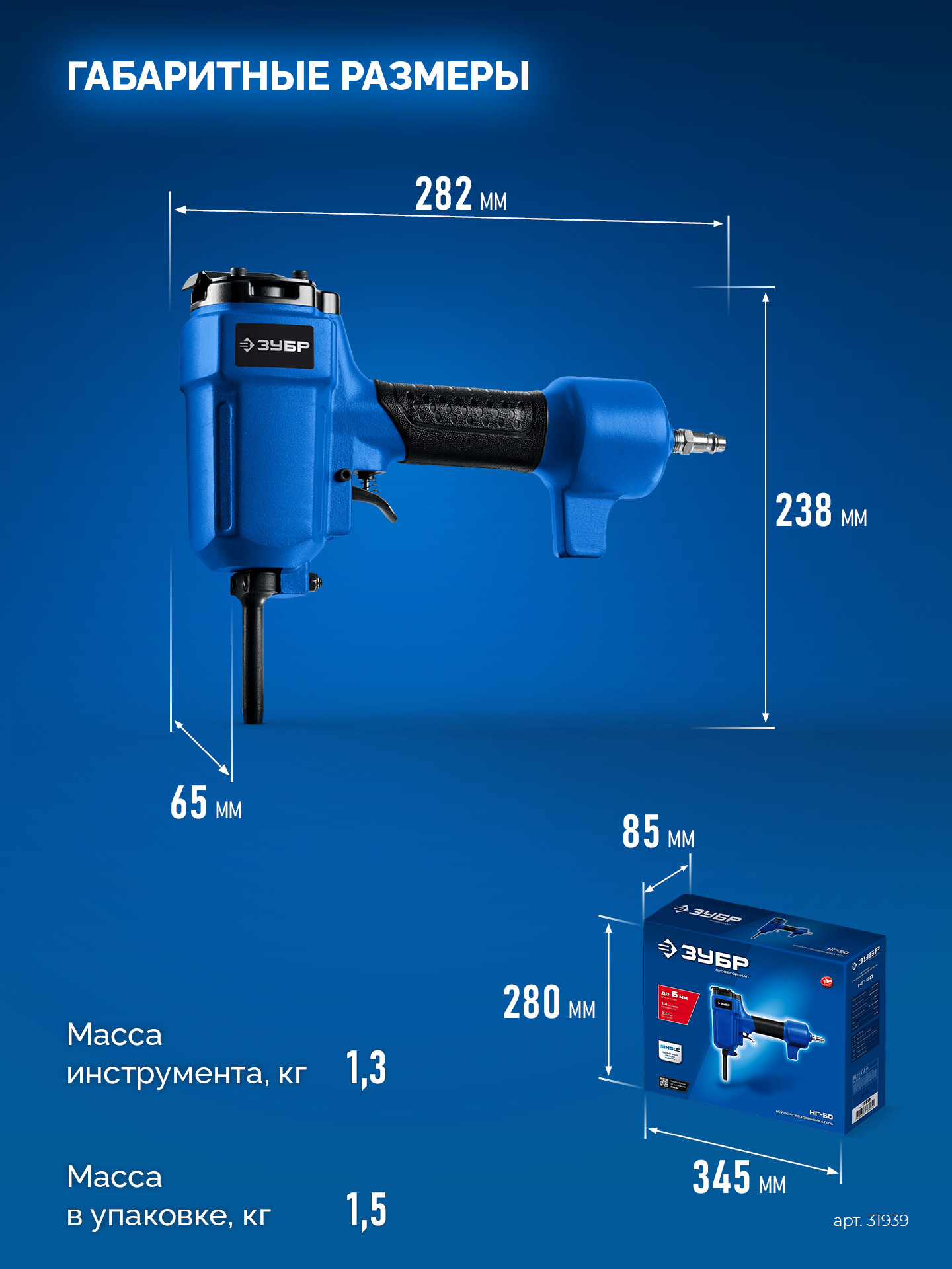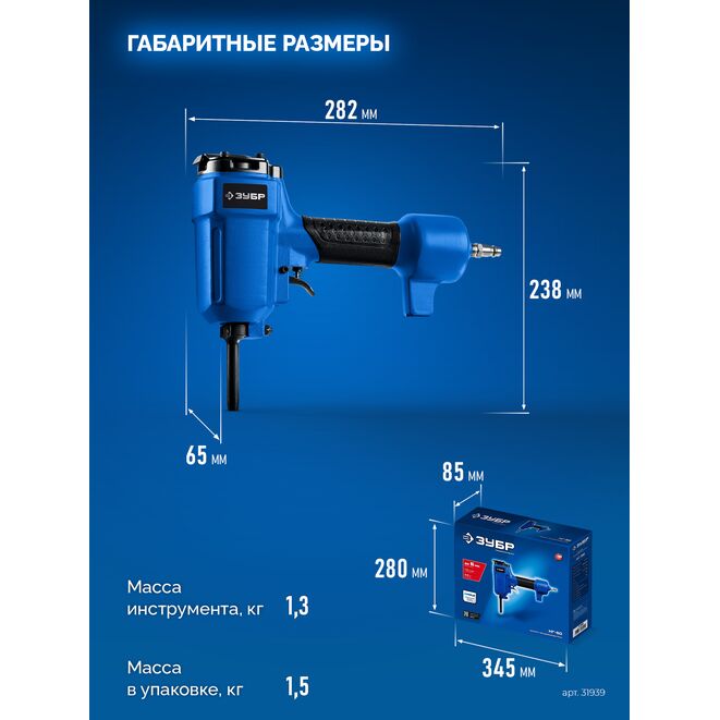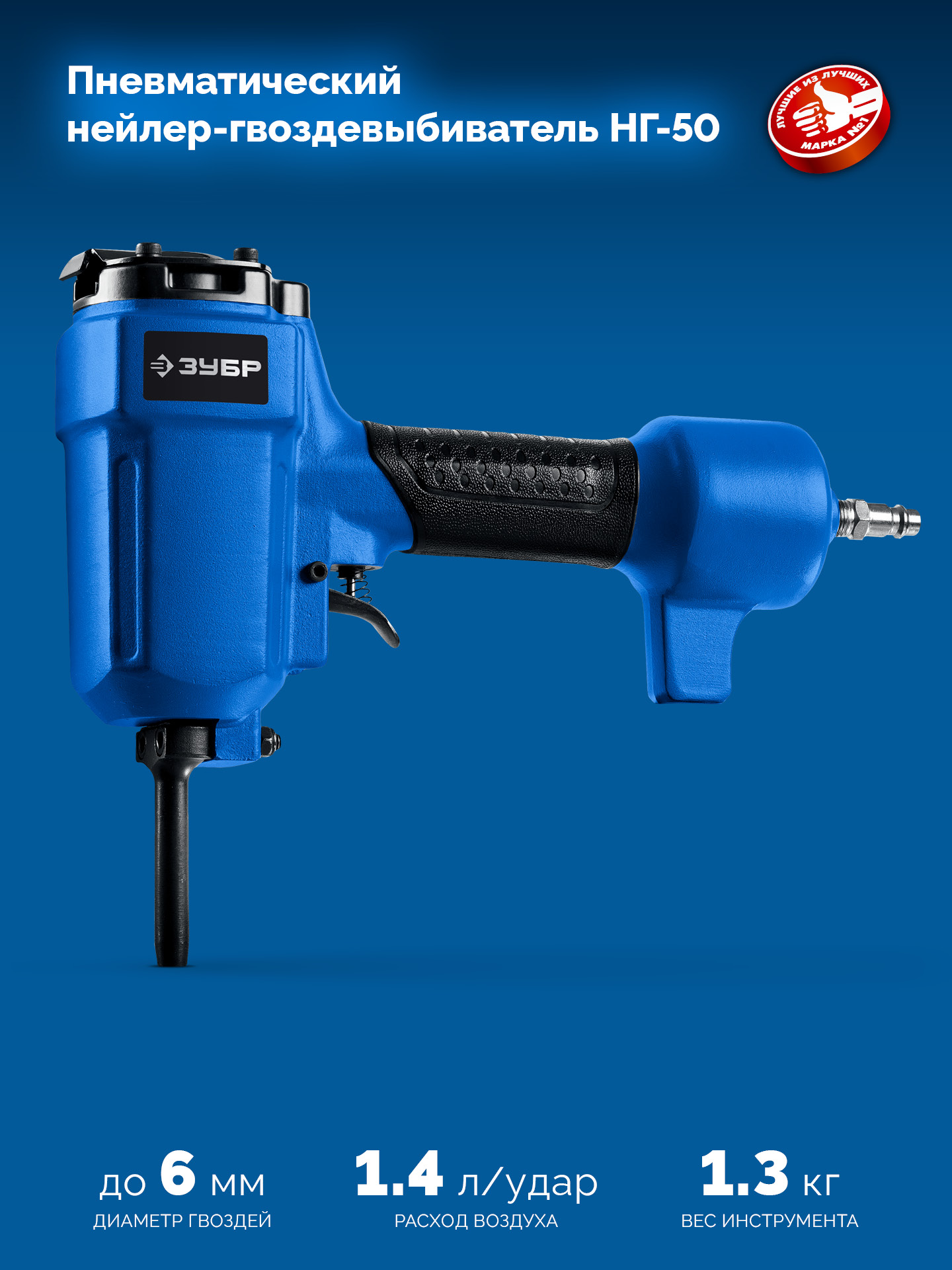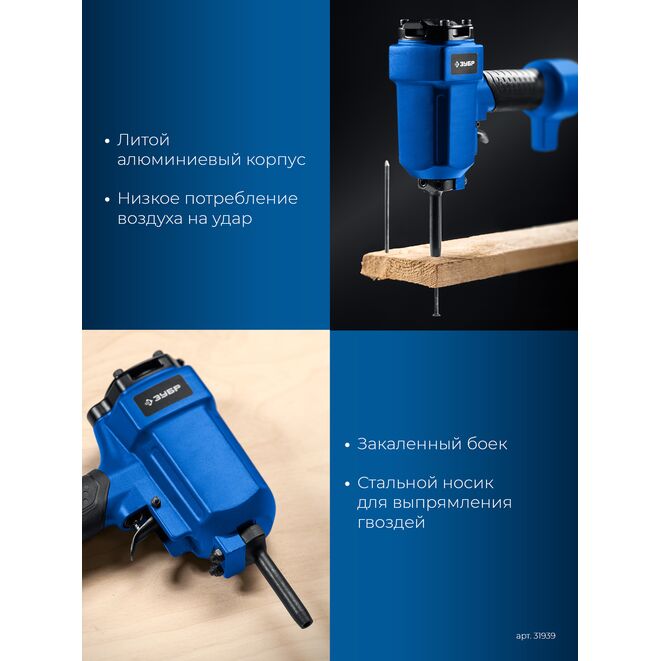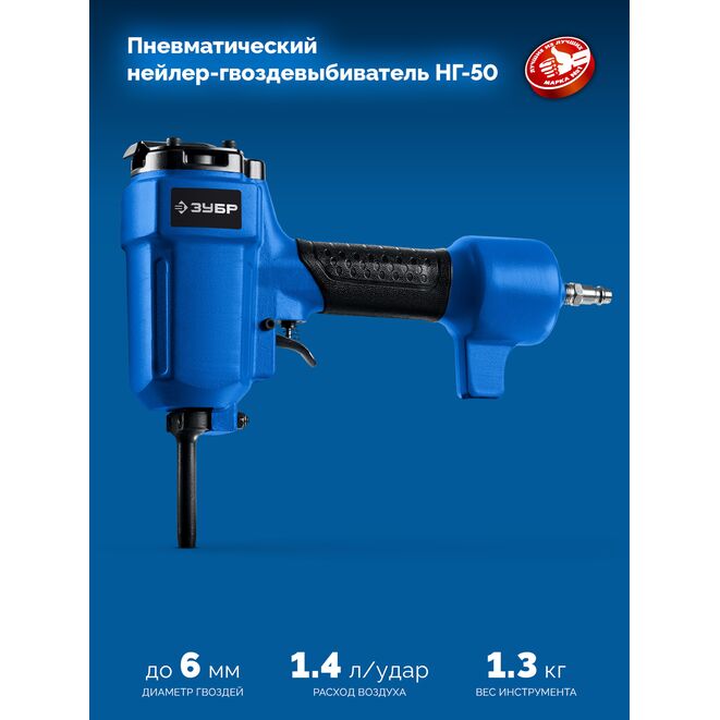 ЗУБР НГ-50, пневматический нейлер-гвоздевыбиватель для гвоздей диаметром до 6 мм, Профессионал (31939)