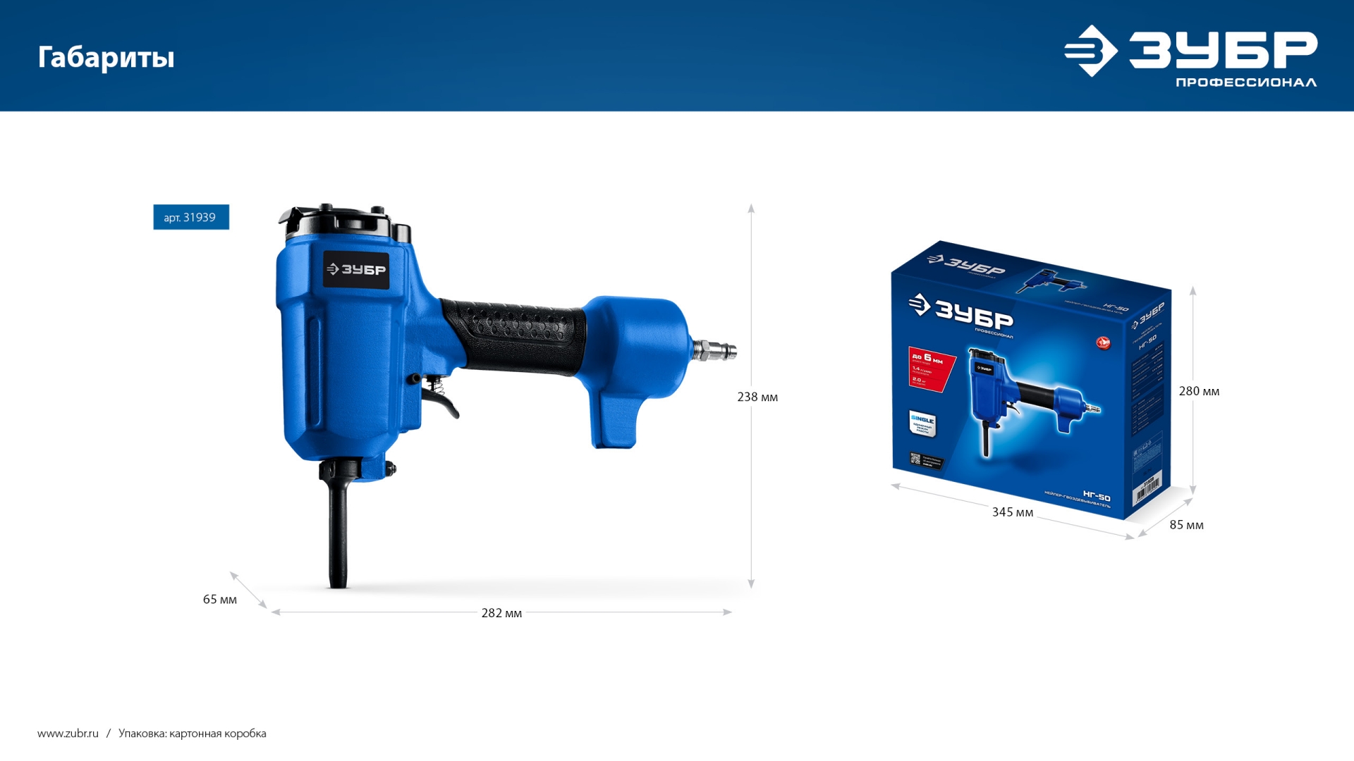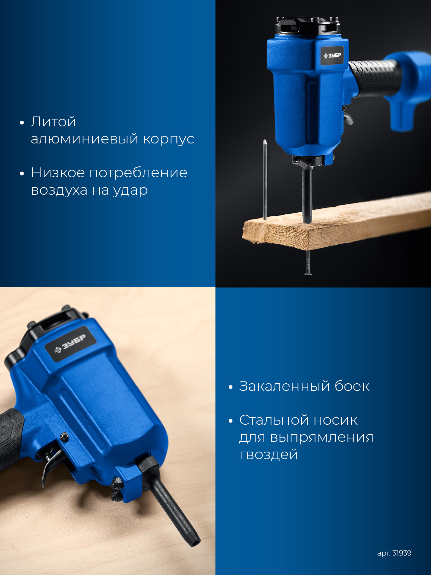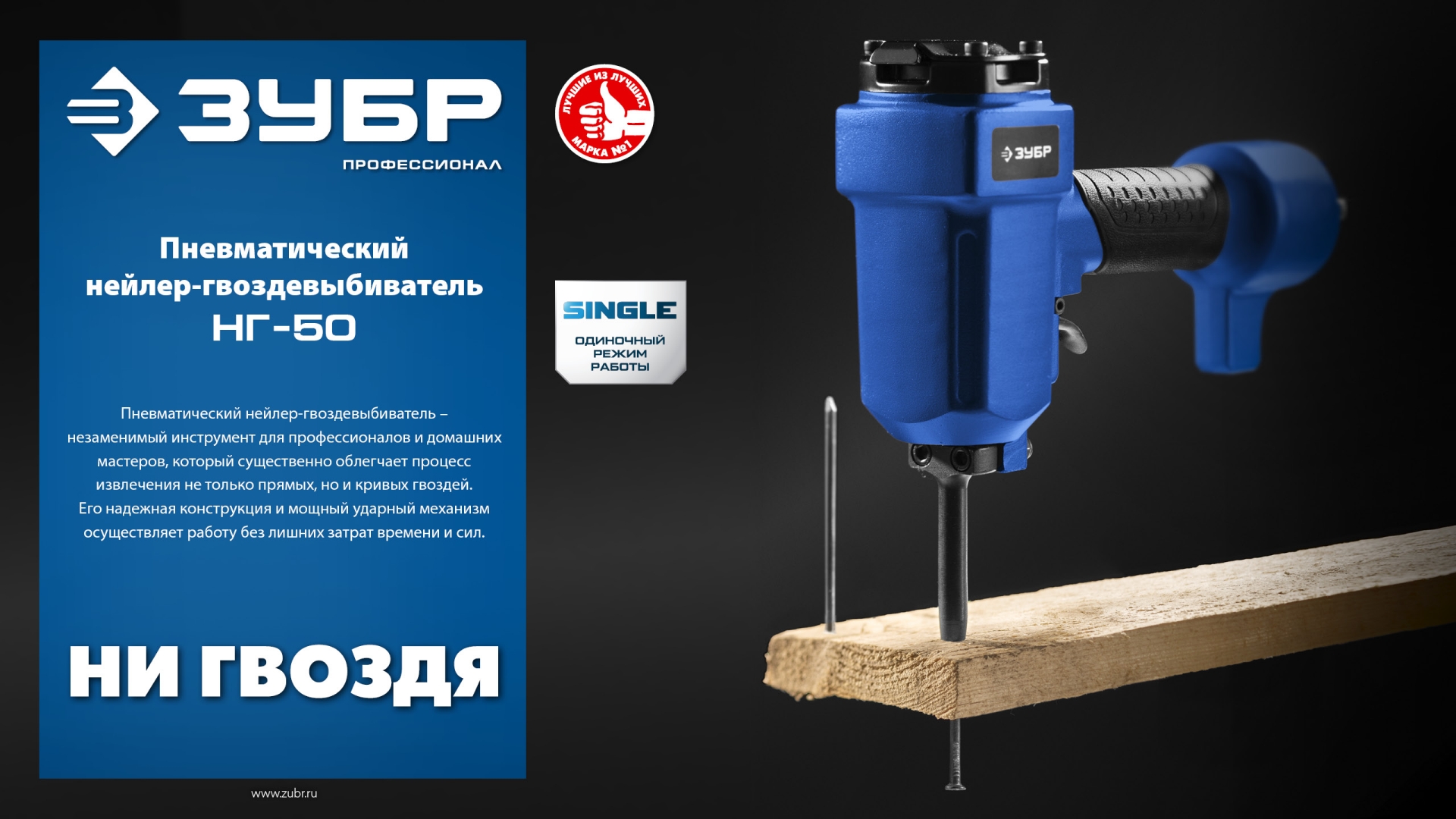 ЗУБР НГ-50, пневматический нейлер-гвоздевыбиватель для гвоздей диаметром до 6 мм, Профессионал (31939)