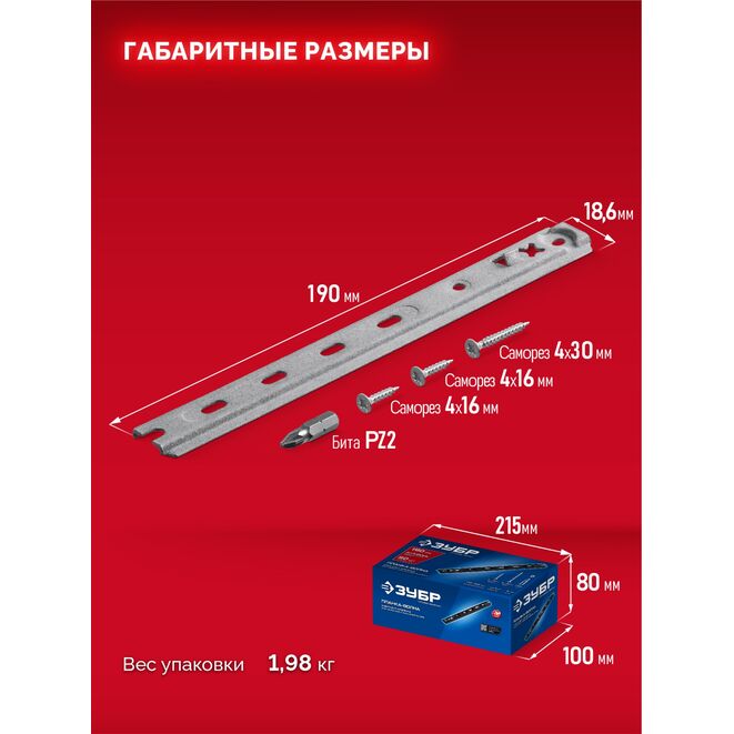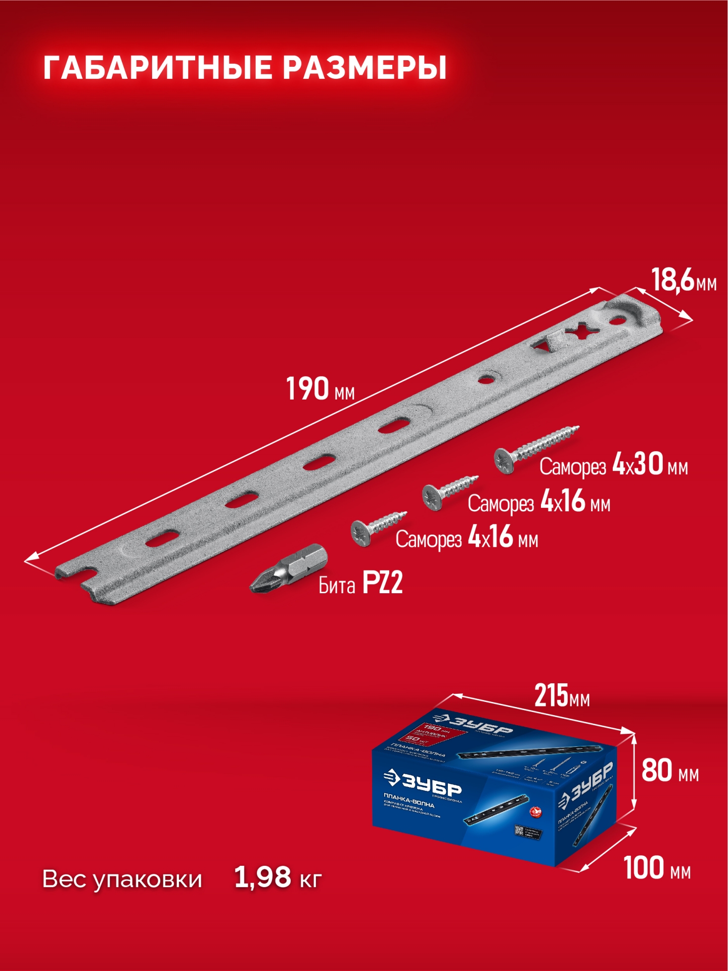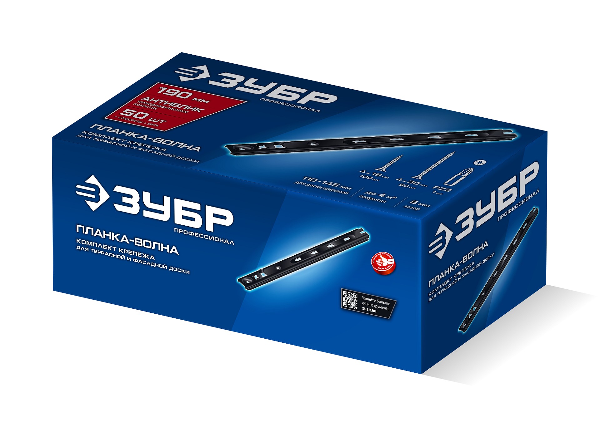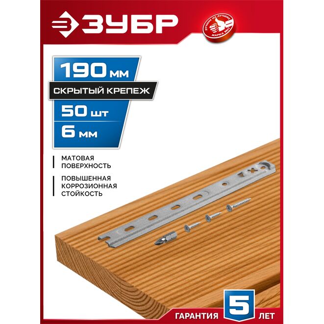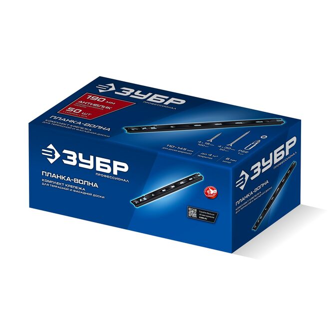 ЗУБР Планка-Волна Антиблик 190 мм, крепеж для фасадной и террасной доски, термодиф. покрытие, с саморезами и битой, 50 шт, Профессионал (307031-190)