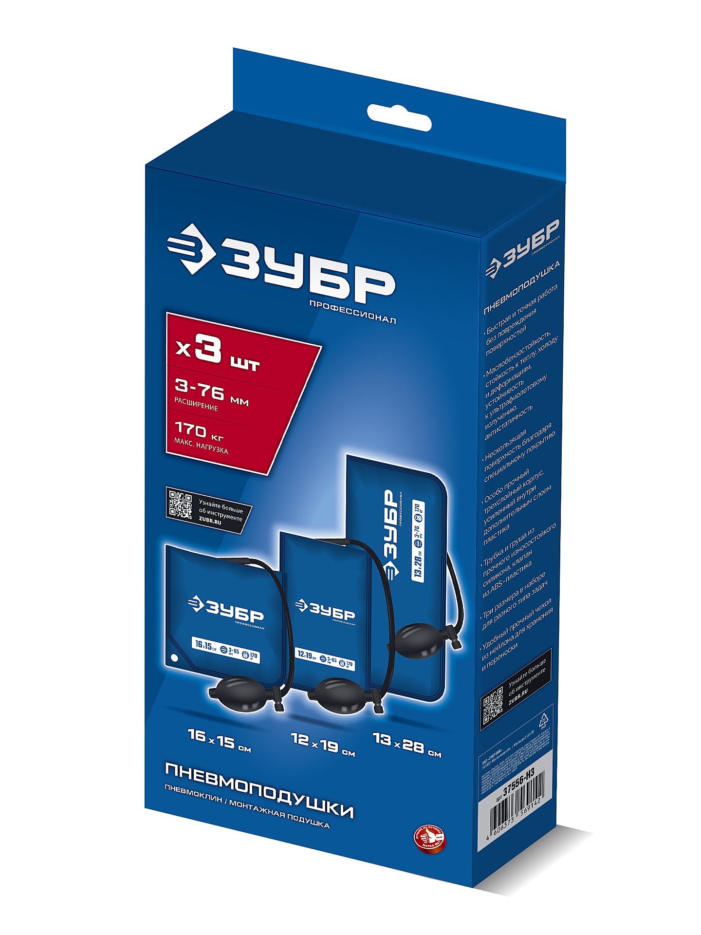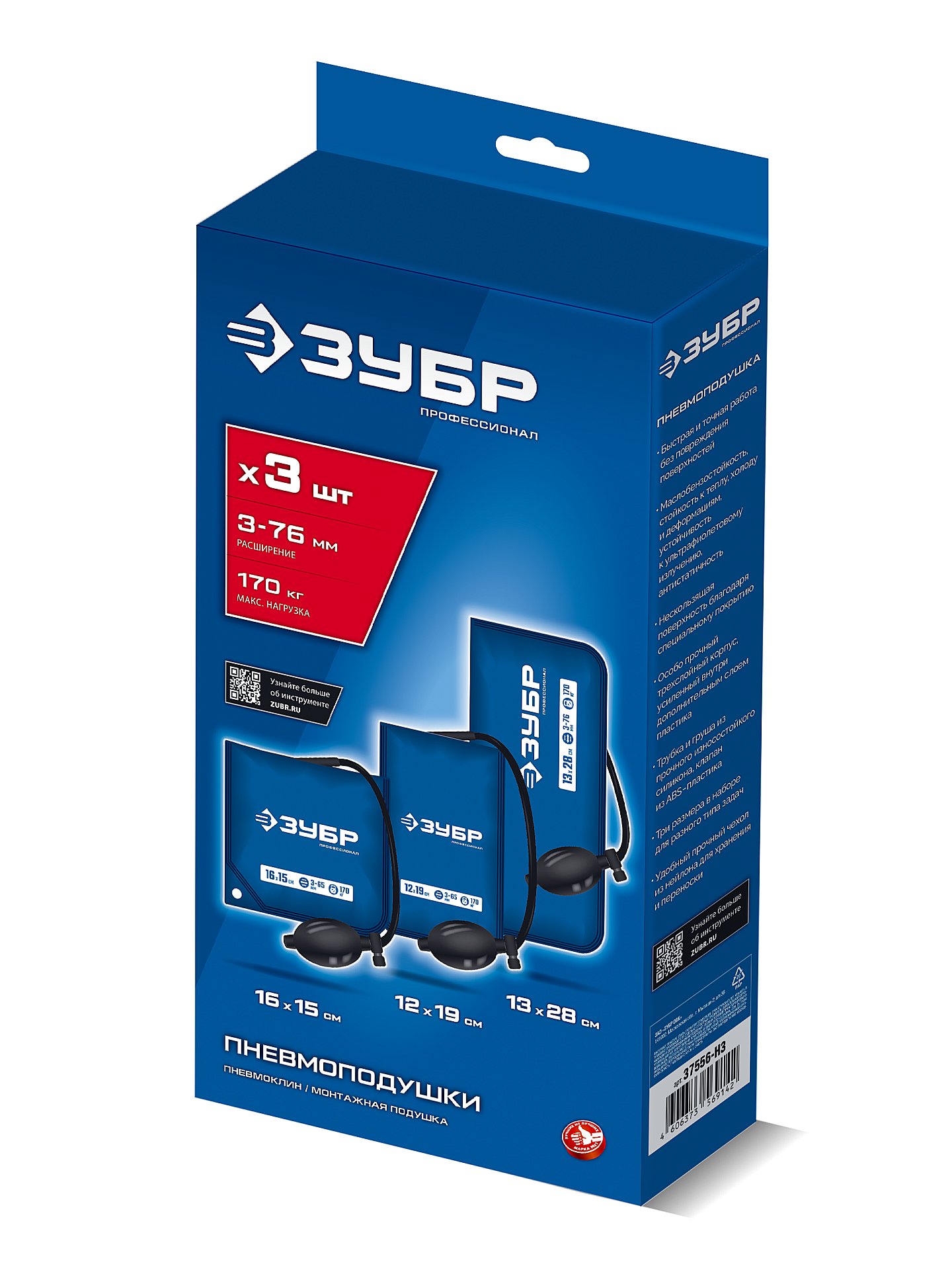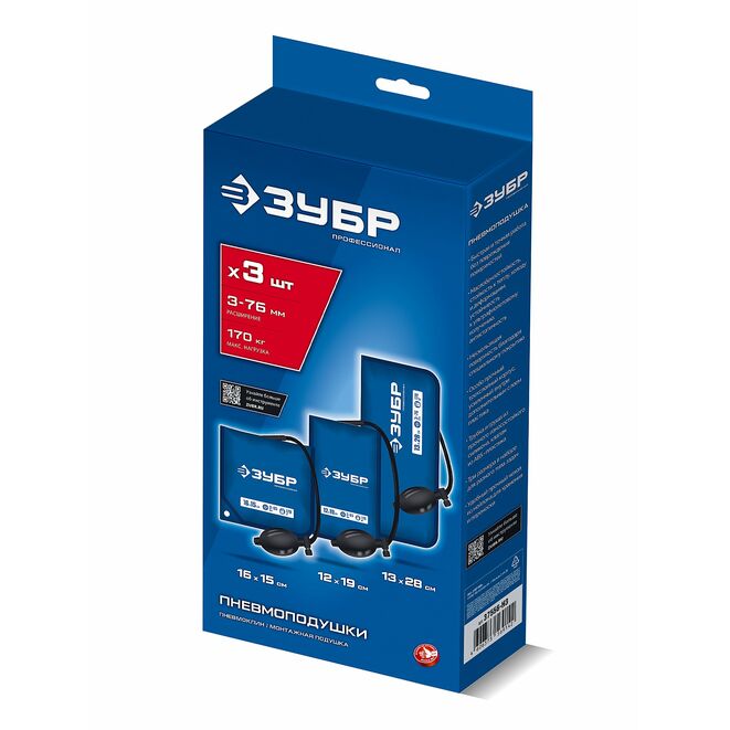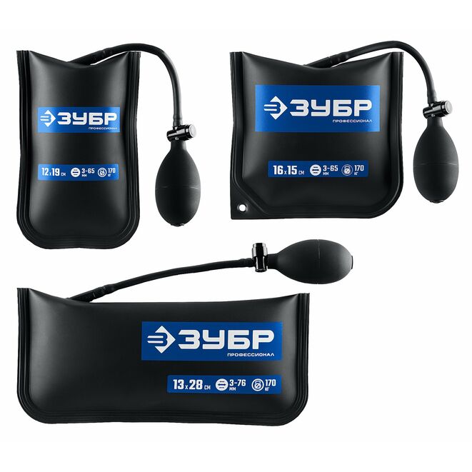 ЗУБР ПНЕВМОПОДУШКА набор 3шт: 12х19, 16х15, 13х28 см, 170кг, в чехле, универсальный пневмоклин/ монтажная подушка/ пневмодомкрат (37556-H3)