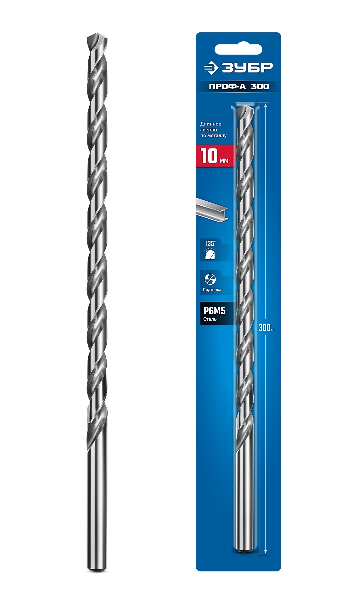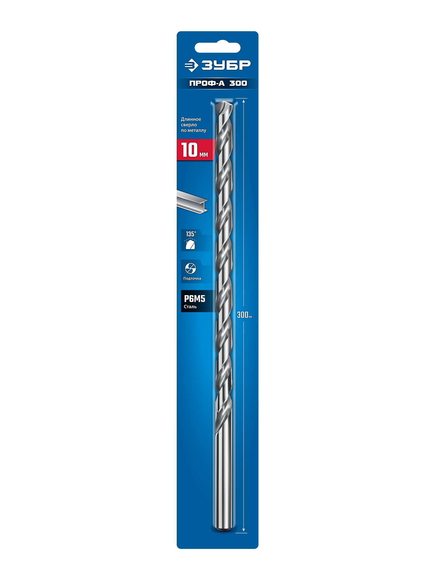ЗУБР ПРОФ-А 300 (10х300 мм; Р6М5) длинное сверло по металлу, класс А (29624-10-300)