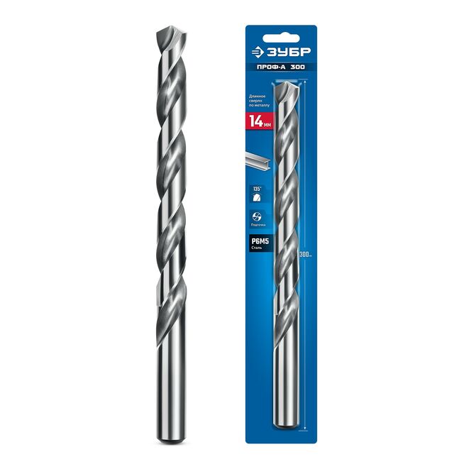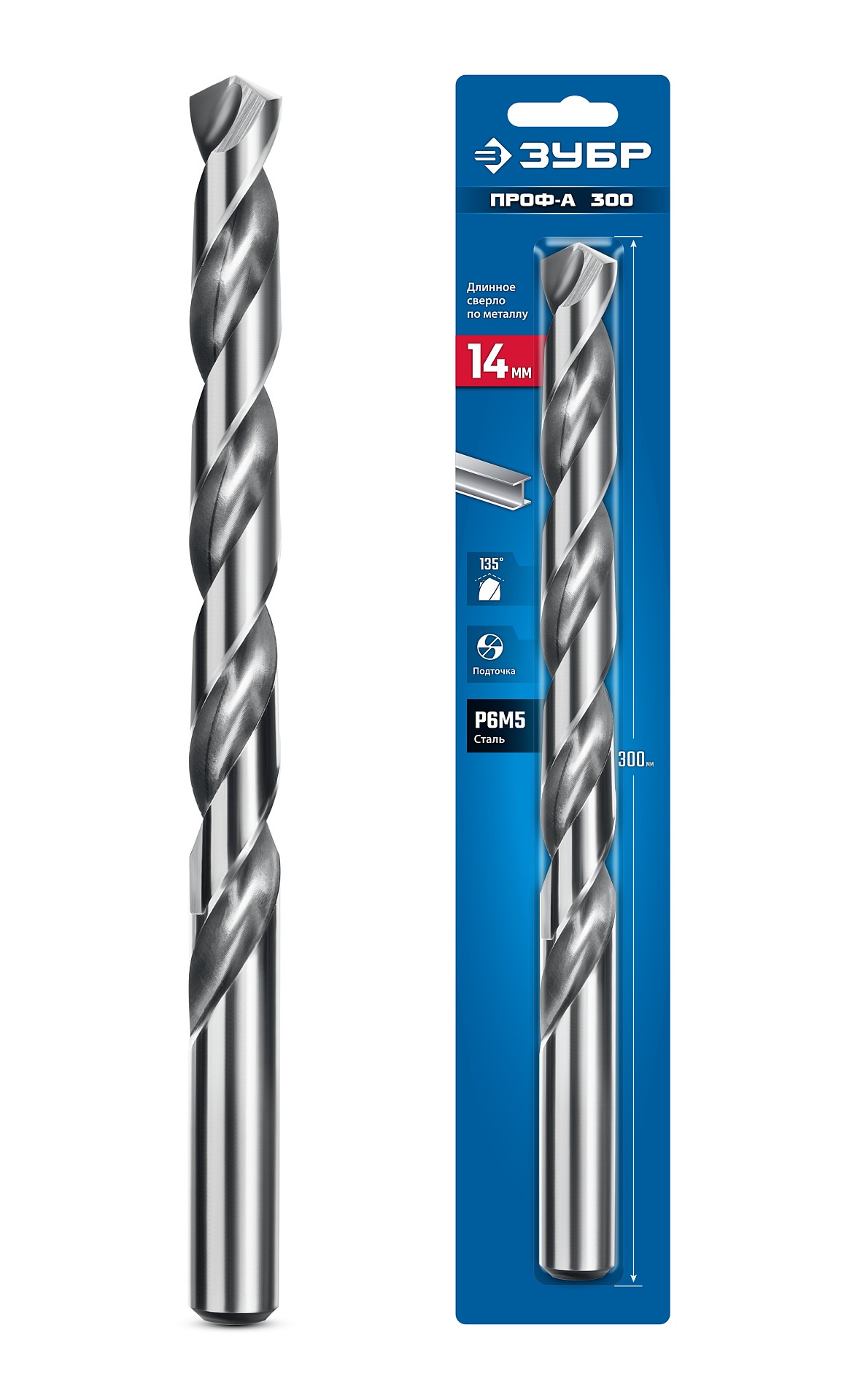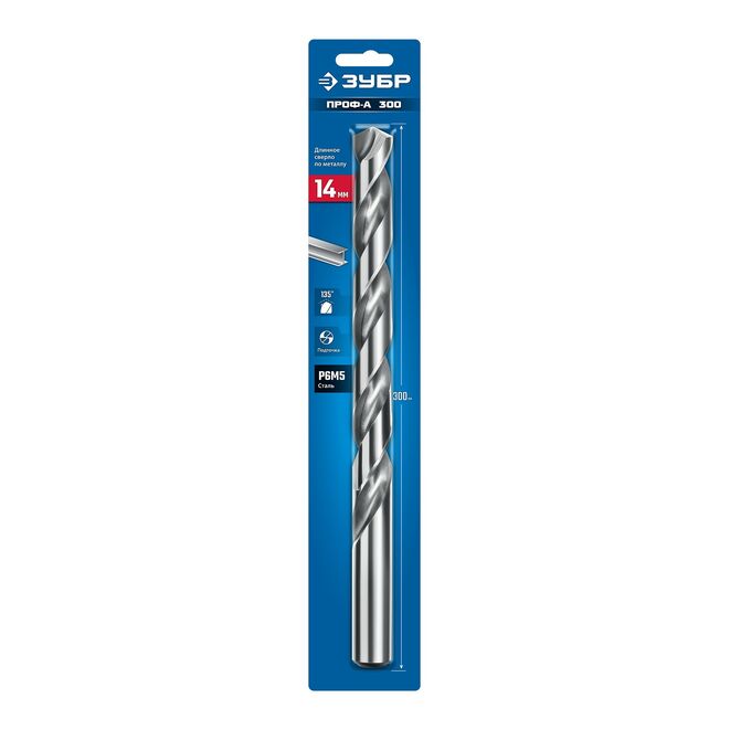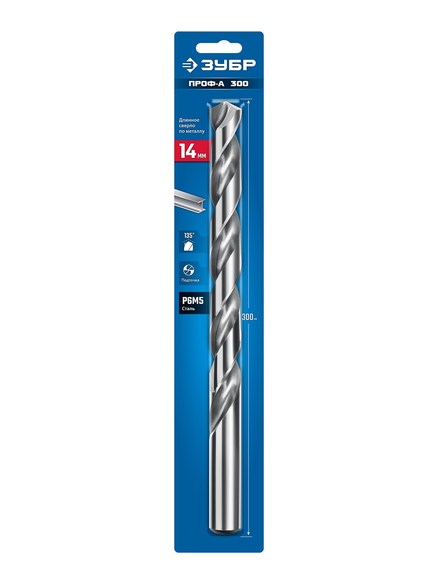 ЗУБР ПРОФ-А 300 (14х300 мм; Р6М5) длинное сверло по металлу, класс А (29624-14-300)