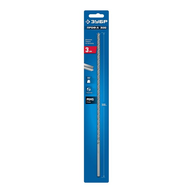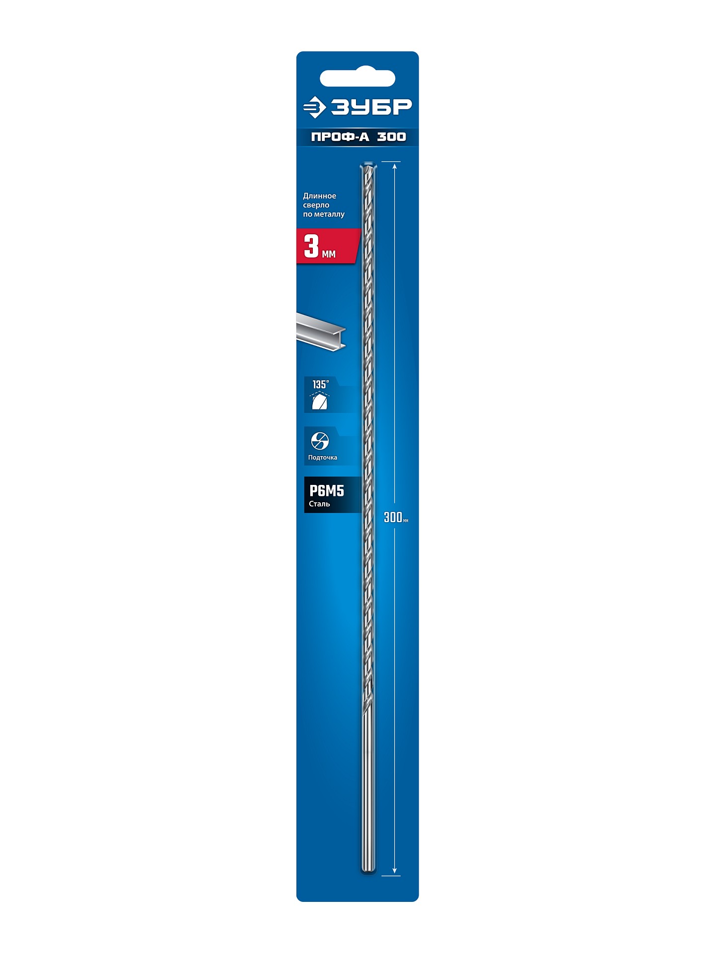 ЗУБР ПРОФ-А 300 (3х300 мм; Р6М5) длинное сверло по металлу, класс А (29624-3-300)