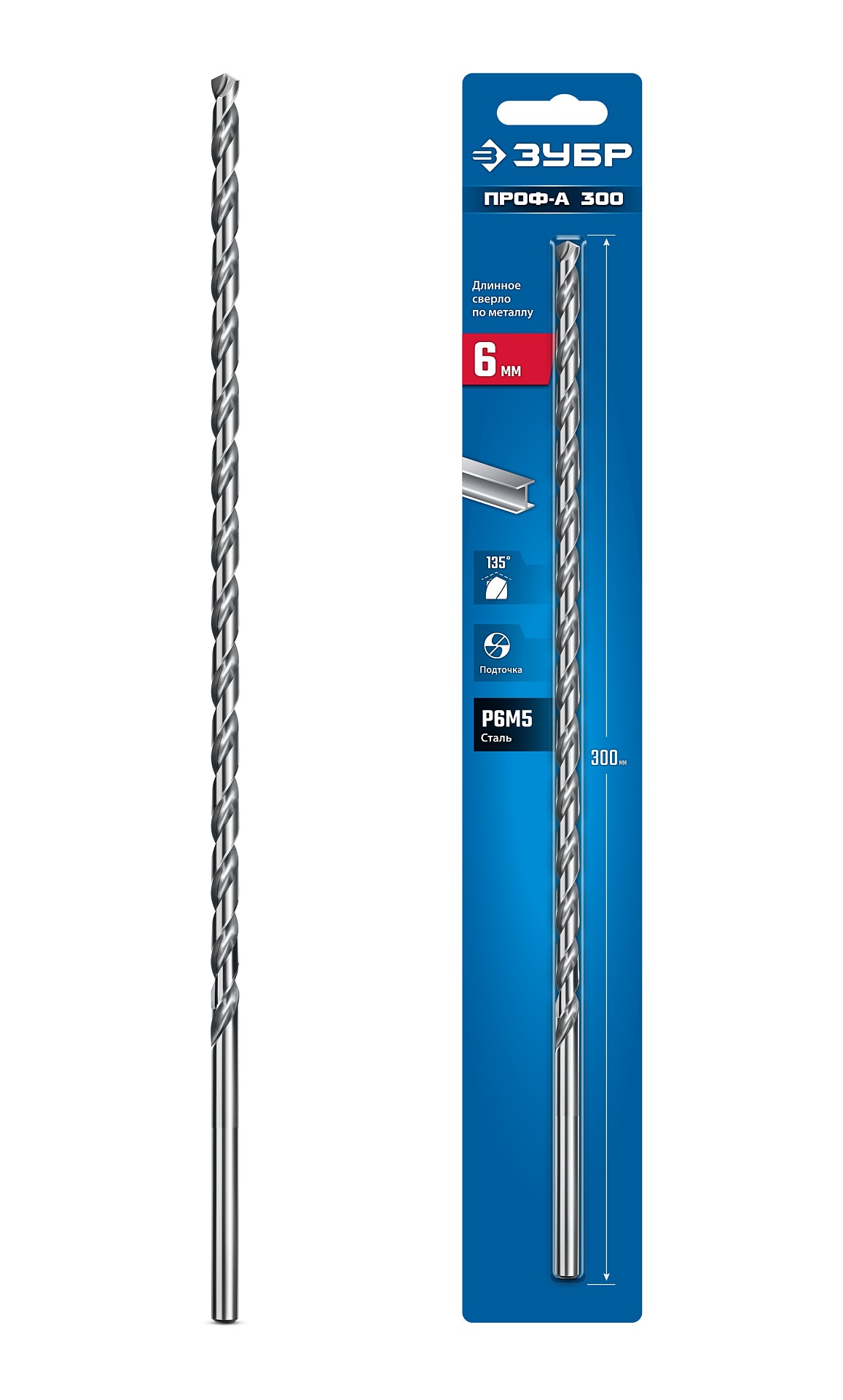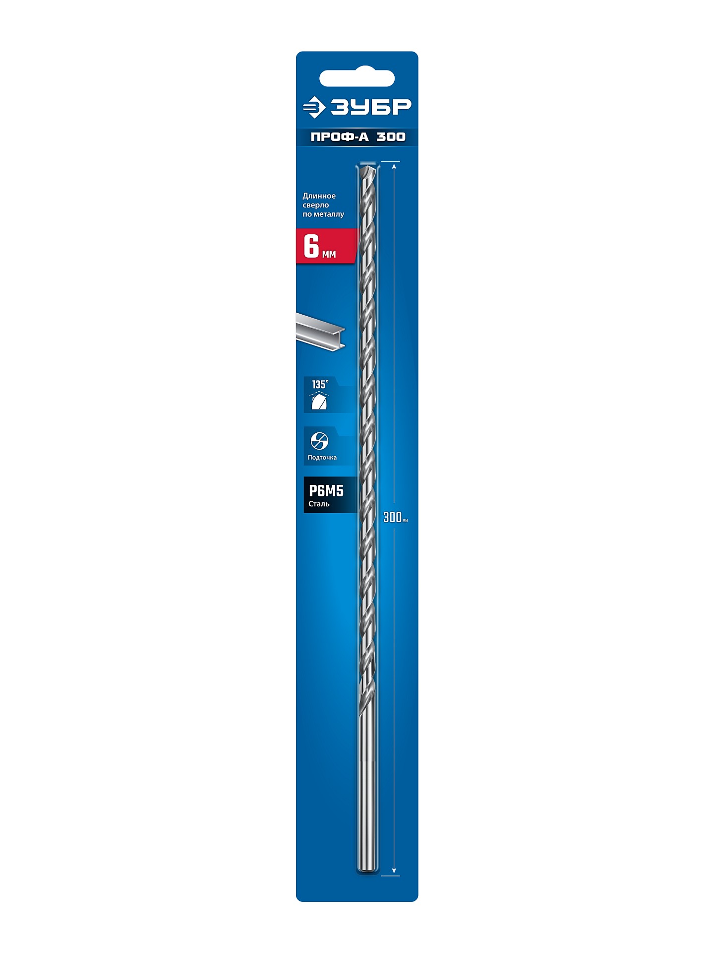 ЗУБР ПРОФ-А 300 (6х300 мм; Р6М5) длинное сверло по металлу, класс А (29624-6-300)