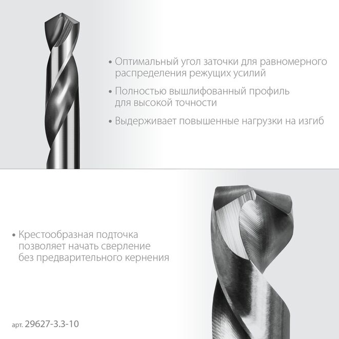 Сверло ЗУБР 29627-3.3-10, предназначено для обработки легированных и углеродистых сталей с пределом прочности до 900Н/мм², цветных металлов, серого чугуна и пластмассы.Характеристики ЗУБР 29627-3.3-10: