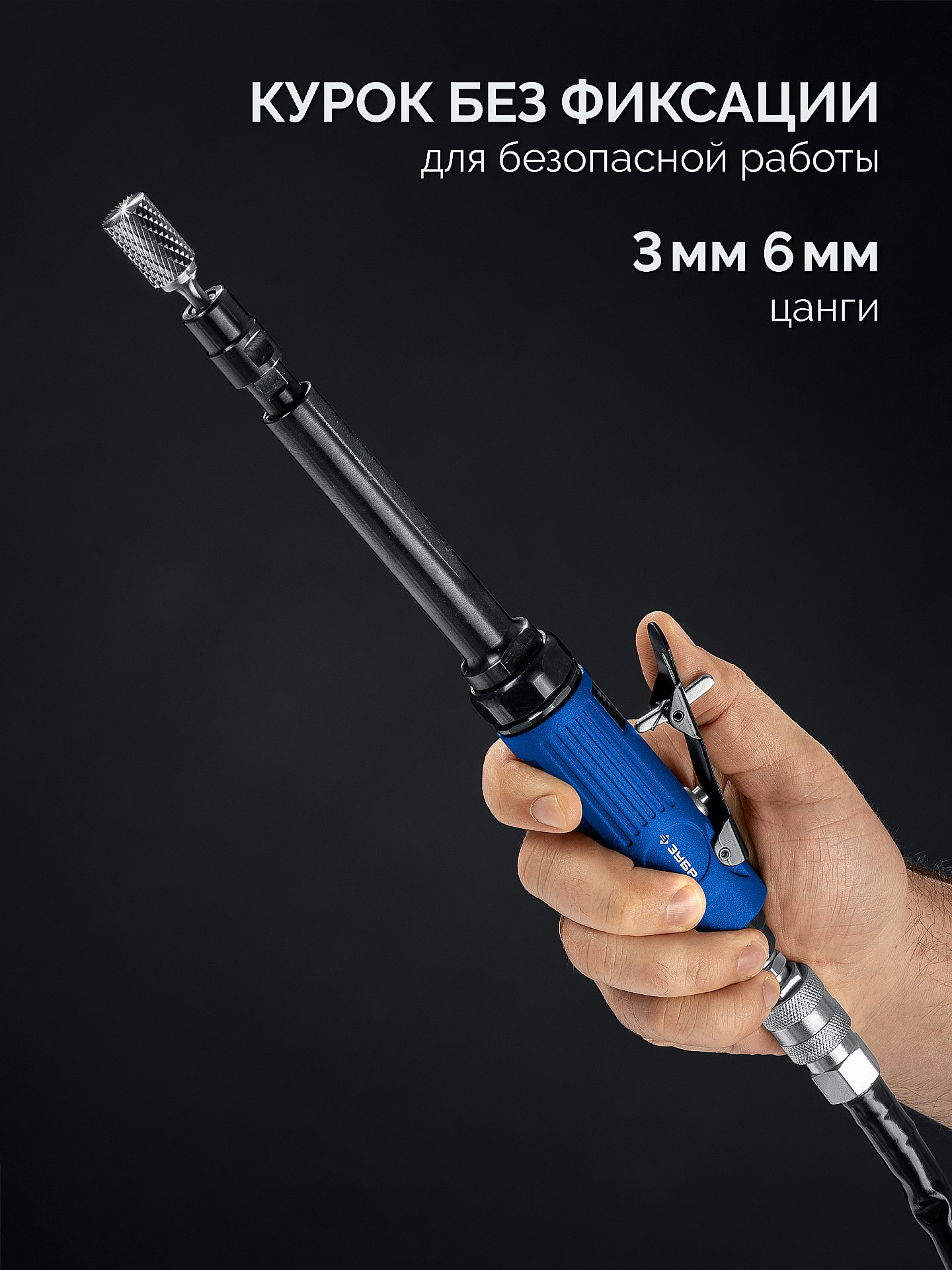 Прямая удлиненная цанговая пневматическая шлифмашина ЗУБР 64335, предназначена для прецизионных шлифовальных работ.Характеристики ЗУБР 64335: