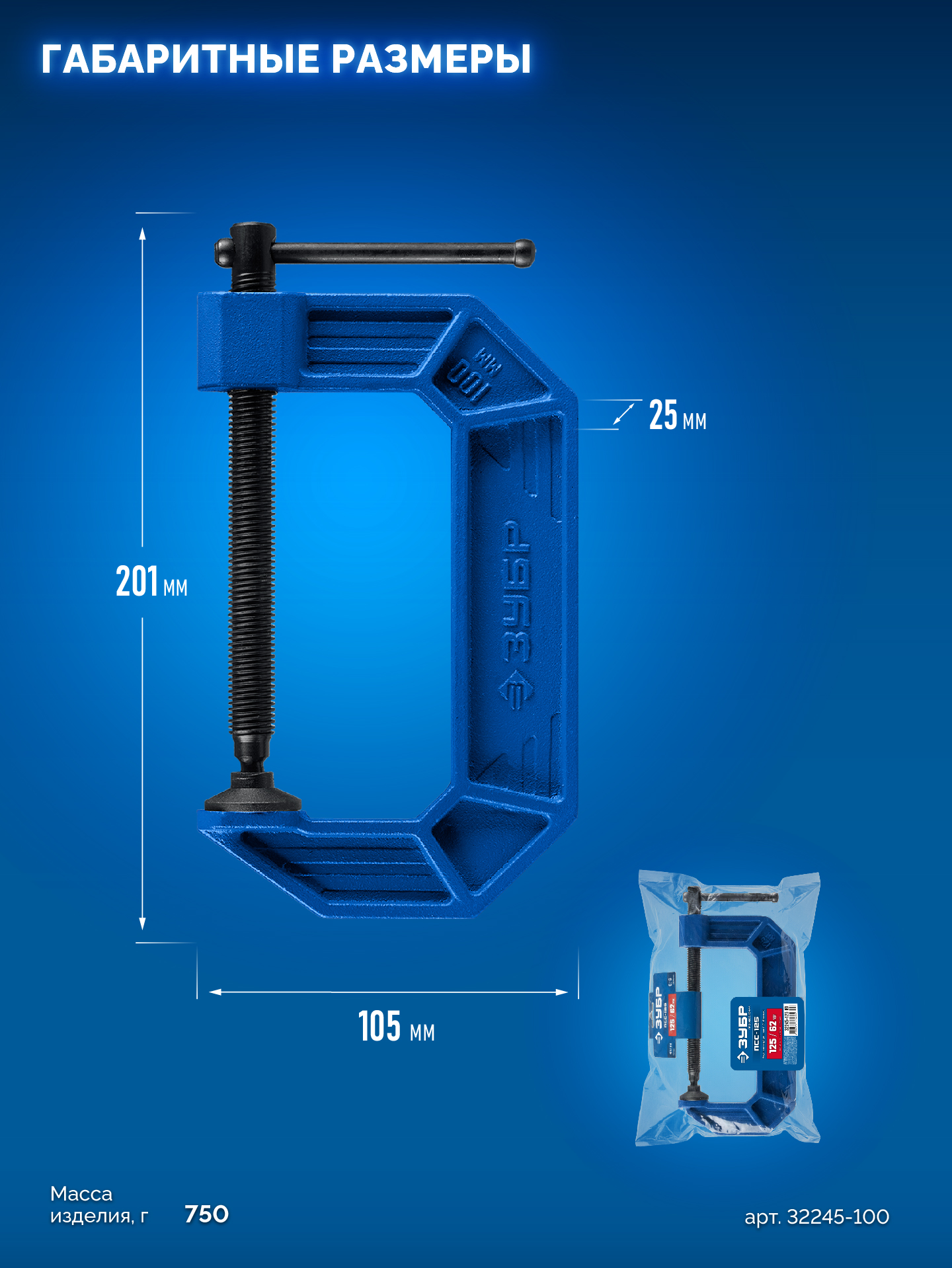 ЗУБР ПСС-100, 100 мм,чугунная струбцина тип С (G-образная), Профессионал (32245-100_z03)