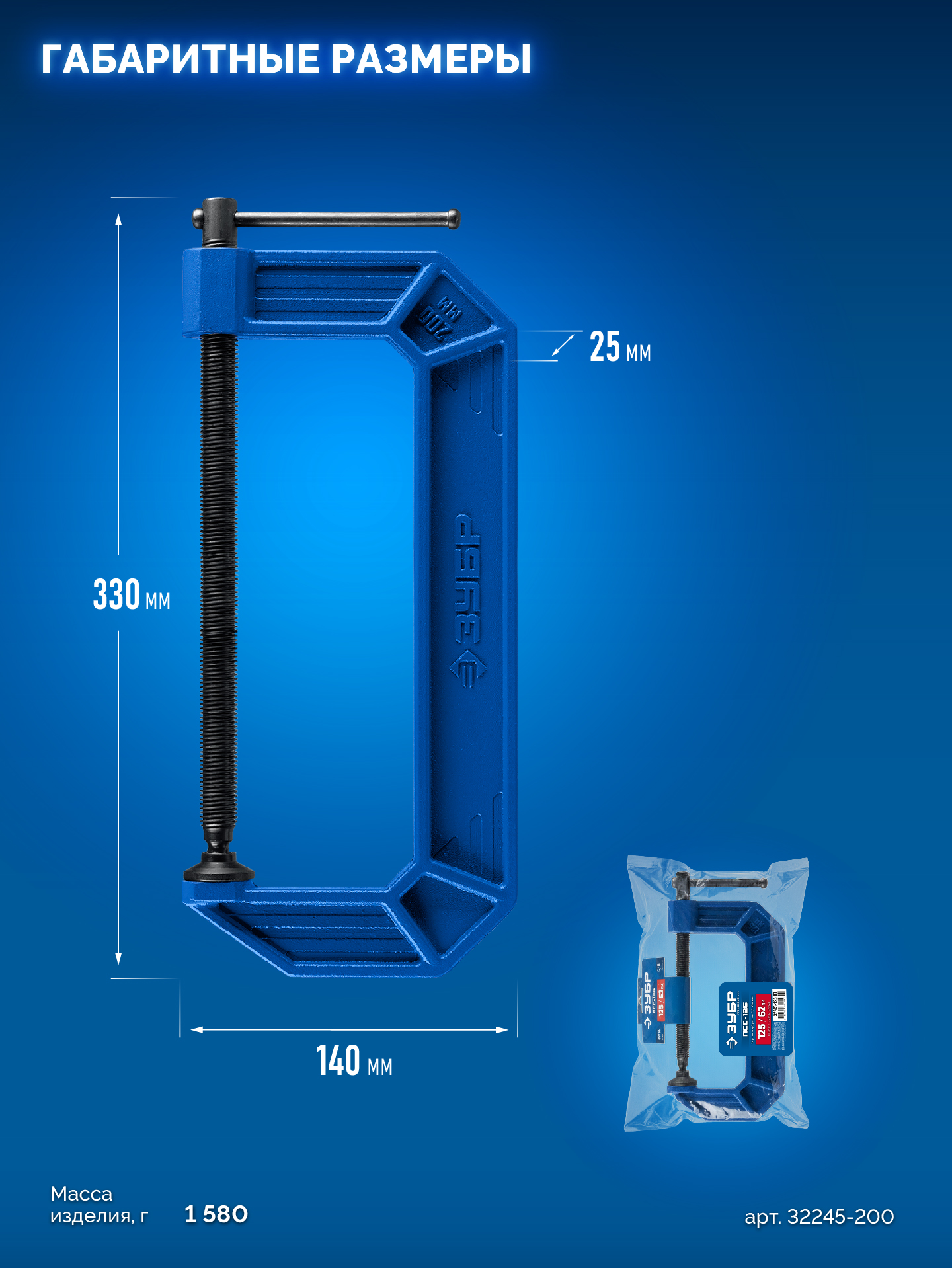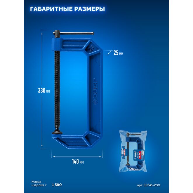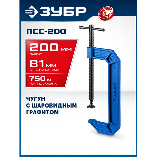 ЗУБР ПСС-200, 200 мм, чугунная струбцина тип С (G-образная), Профессионал (32245-200_z03)