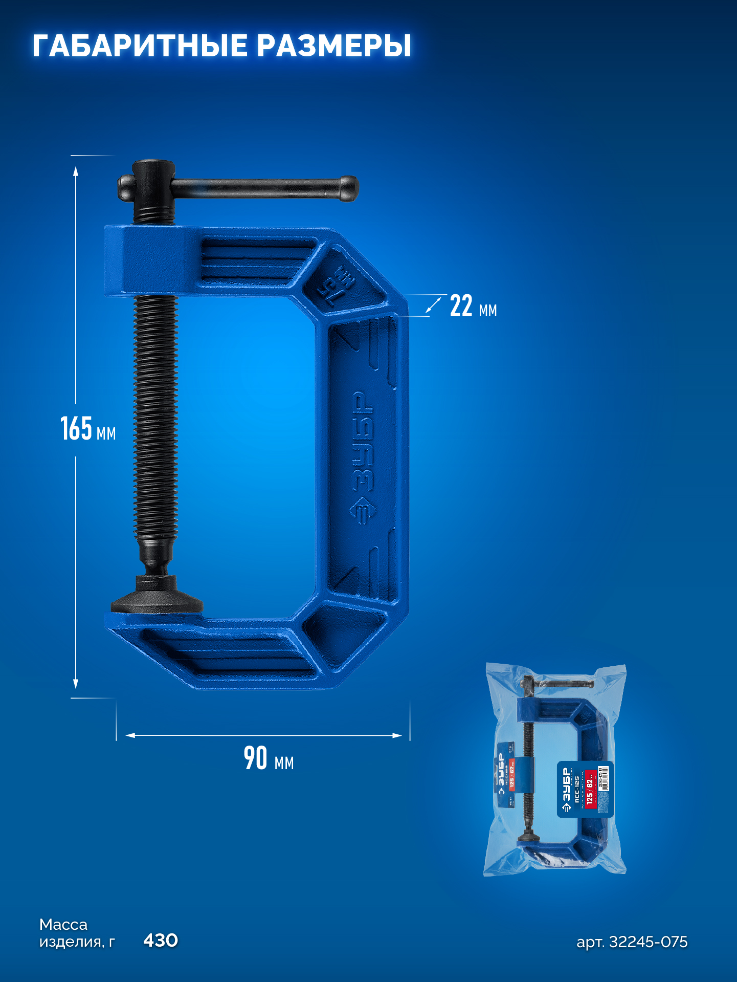 ЗУБР ПСС-75, 75 мм,чугунная струбцина тип С (G-образная), Профессионал (32245-075_z03)