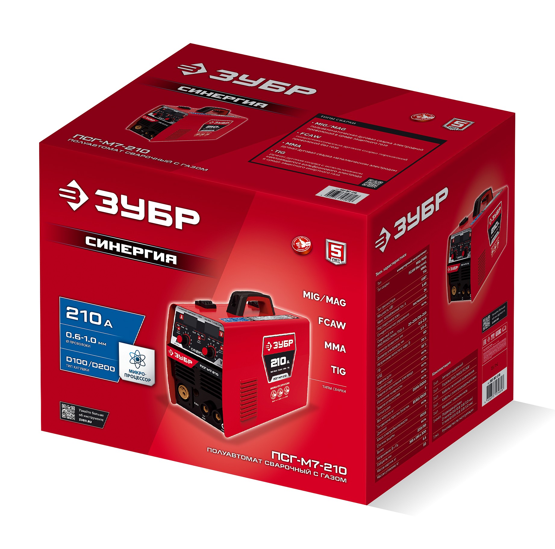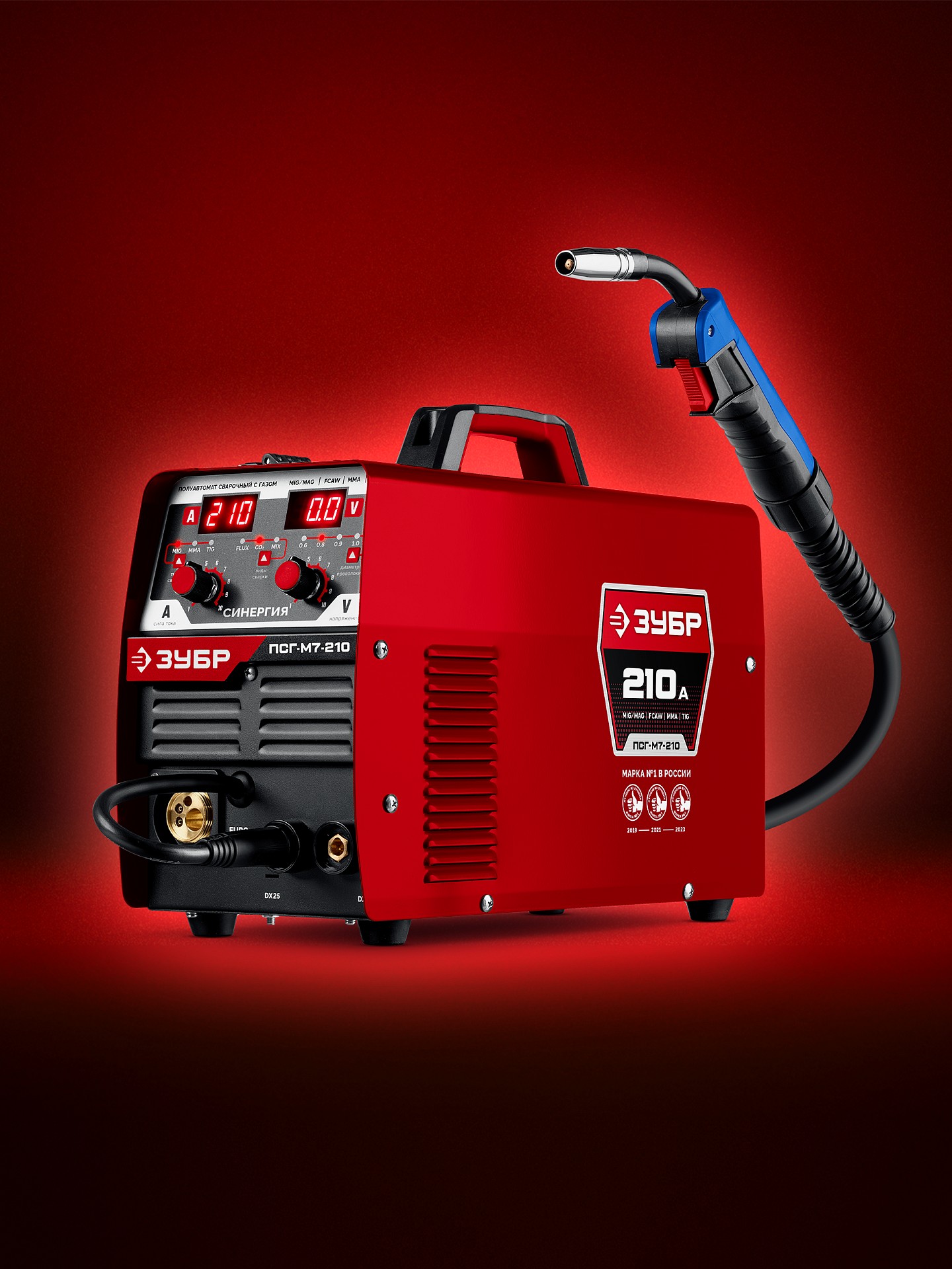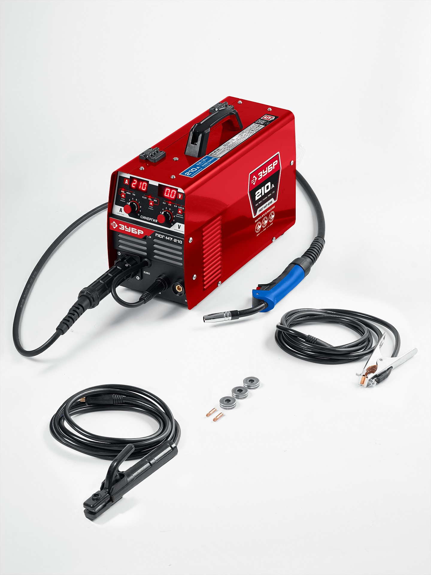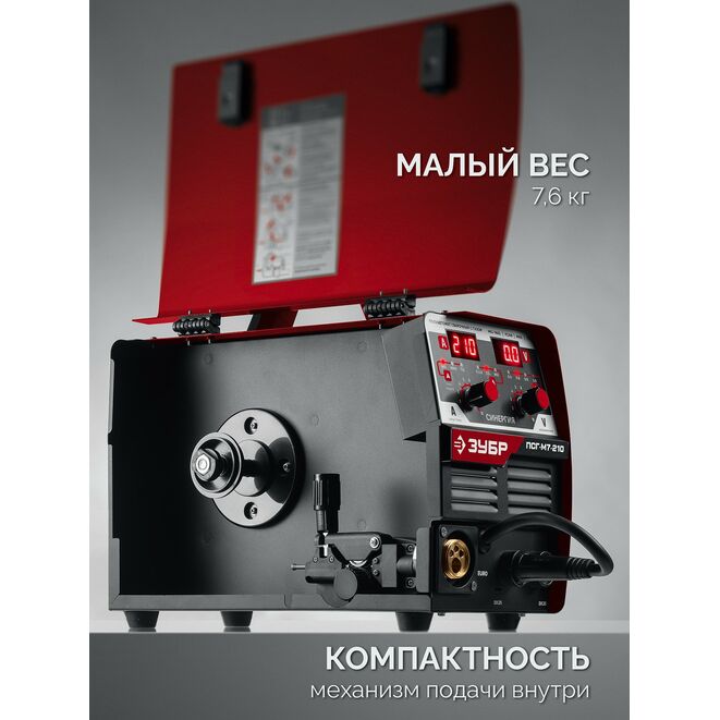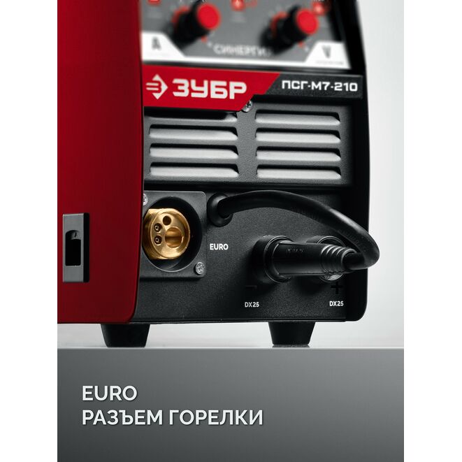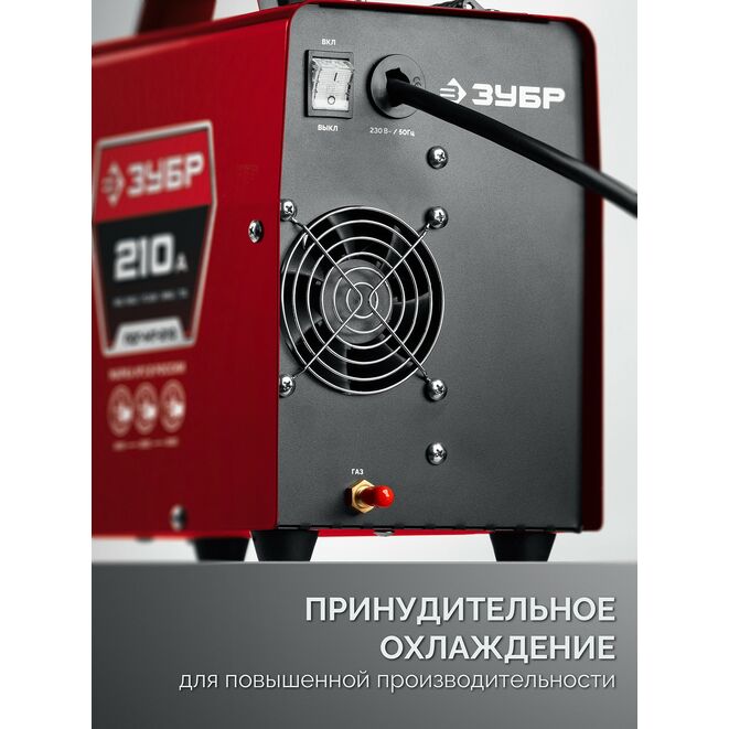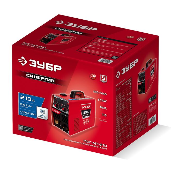 ЗУБР СИНЕРГИЯ, MIG / MAG, FCAW, MMA, TIG, 210 А, полуавтомат сварочный, с газом / без газа, горелка ПСГ-220 (ПСГ-М7-210)