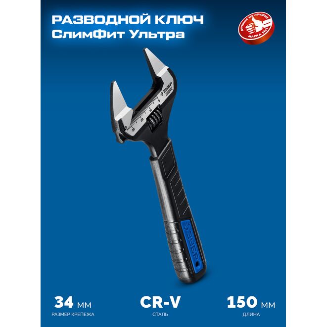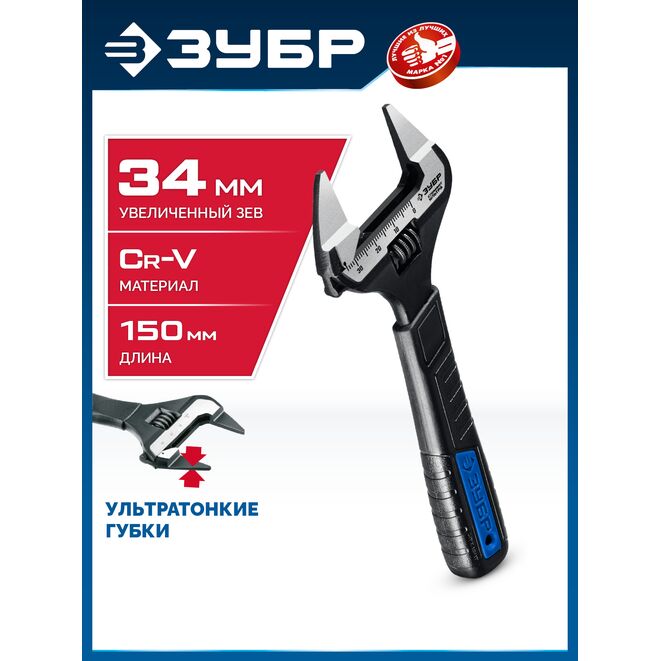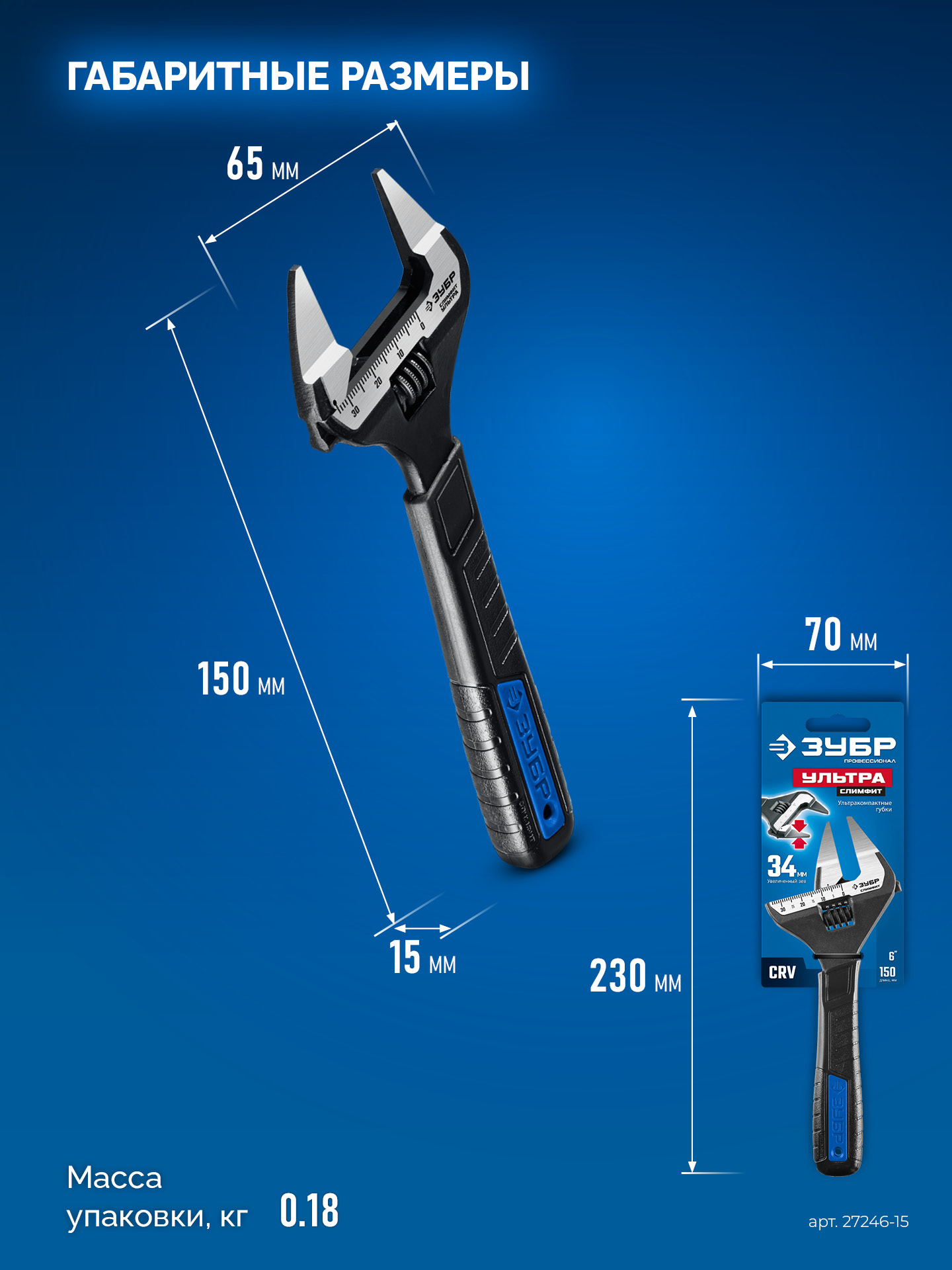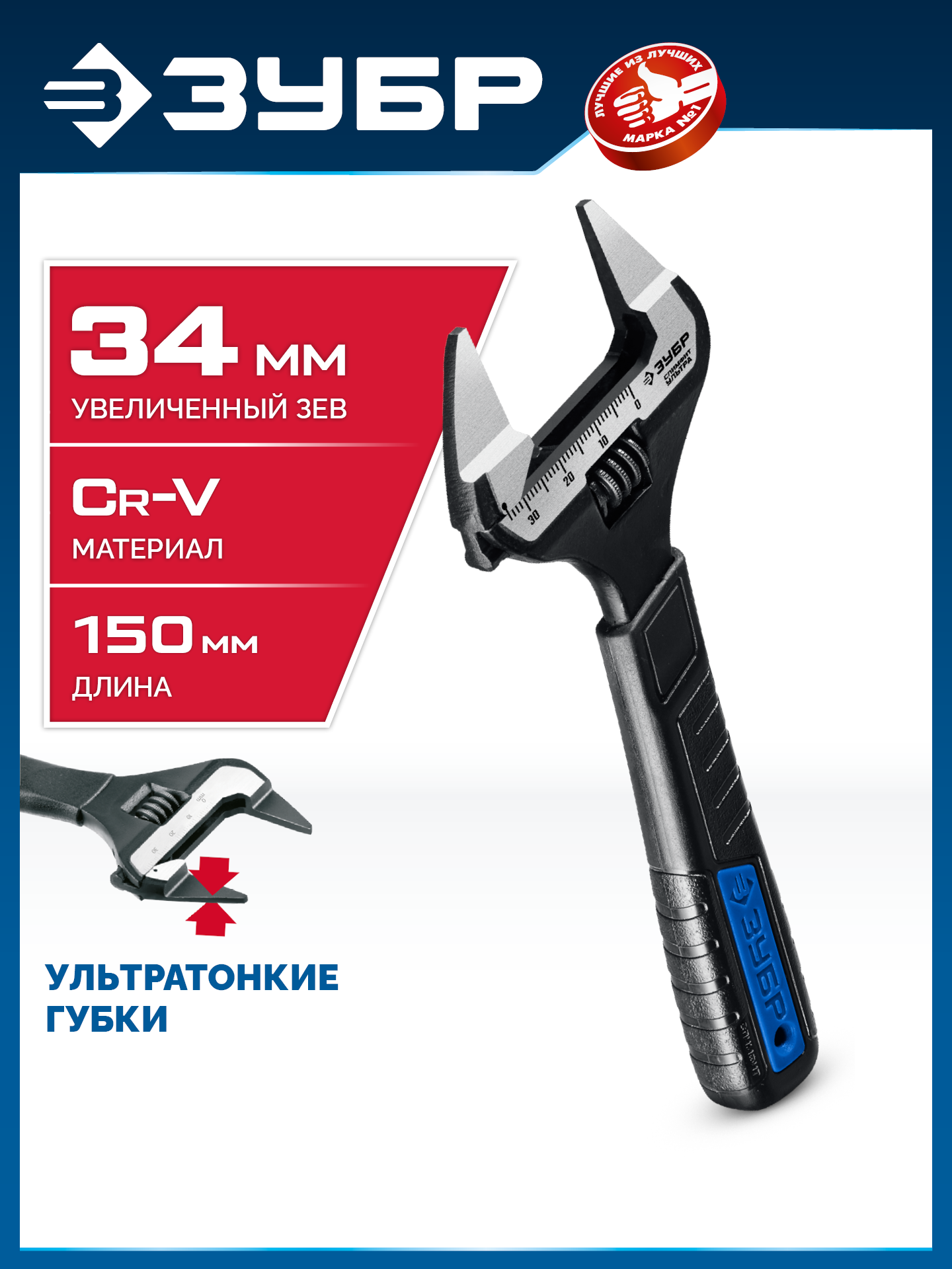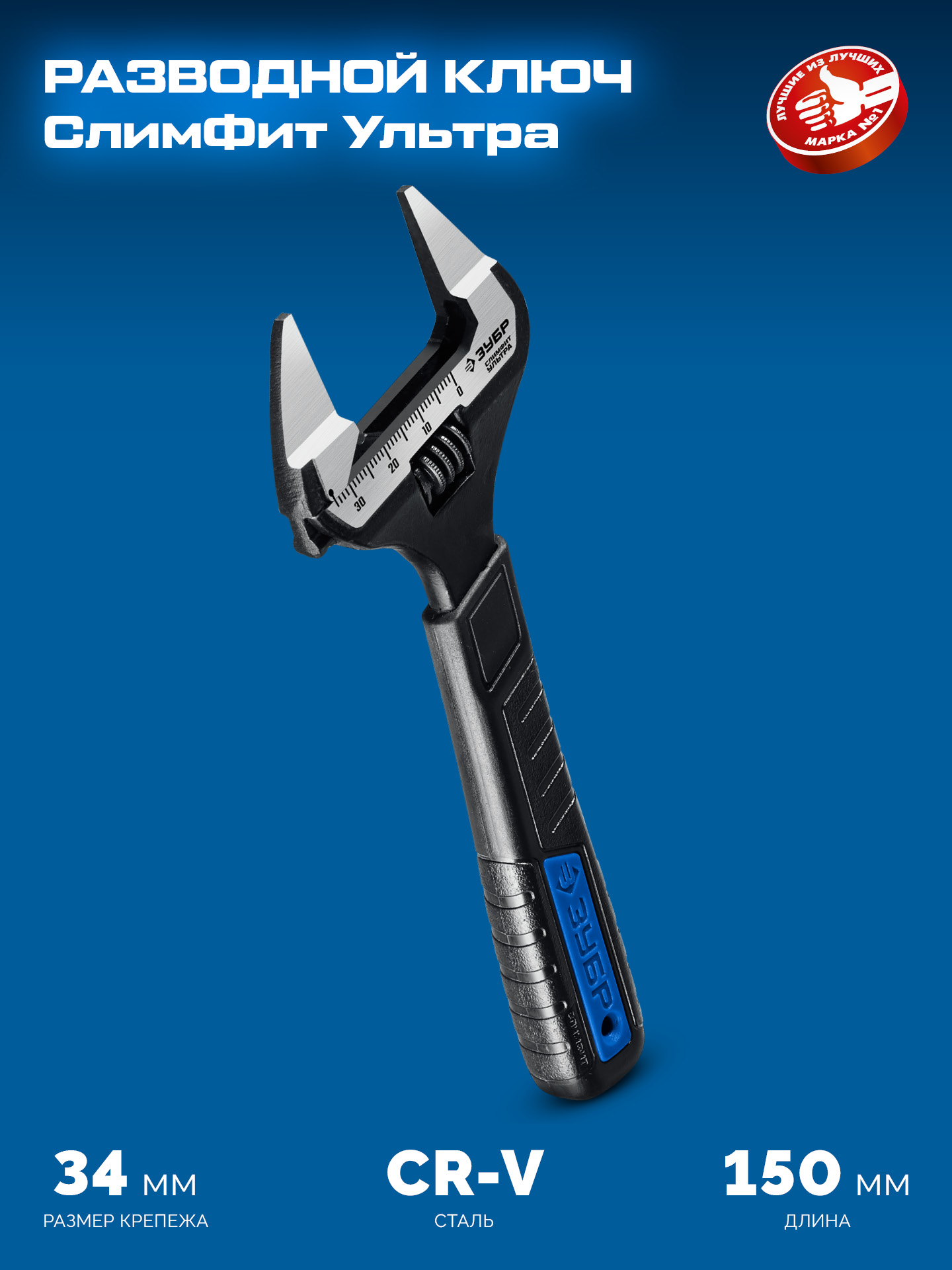 ЗУБР СлимФит Ультра, 150 / 34 мм, разводной ключ, Профессионал (27246-15)